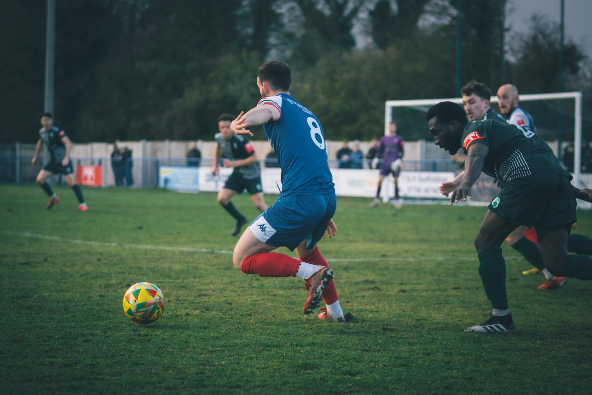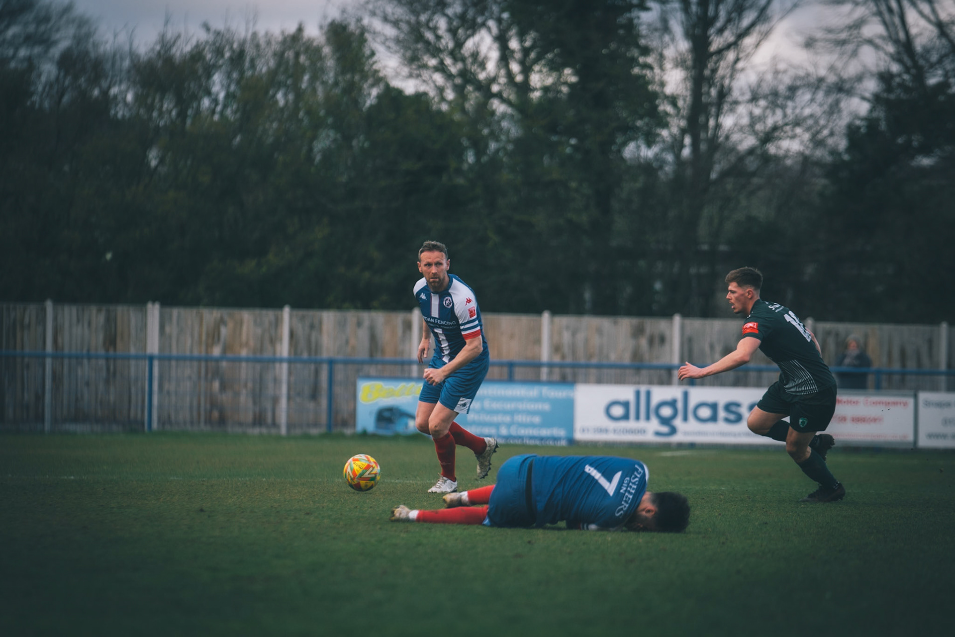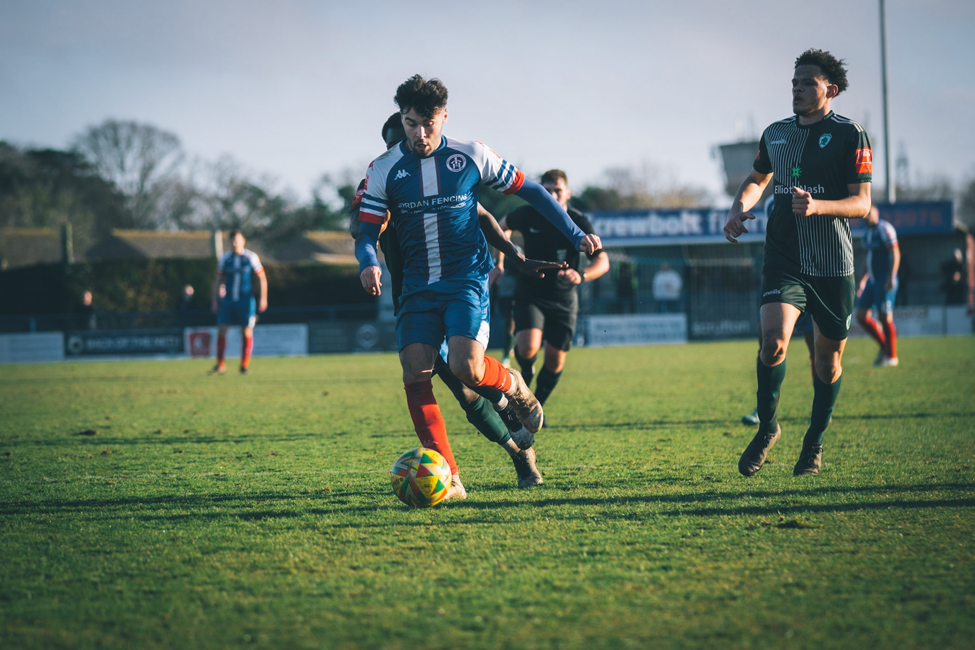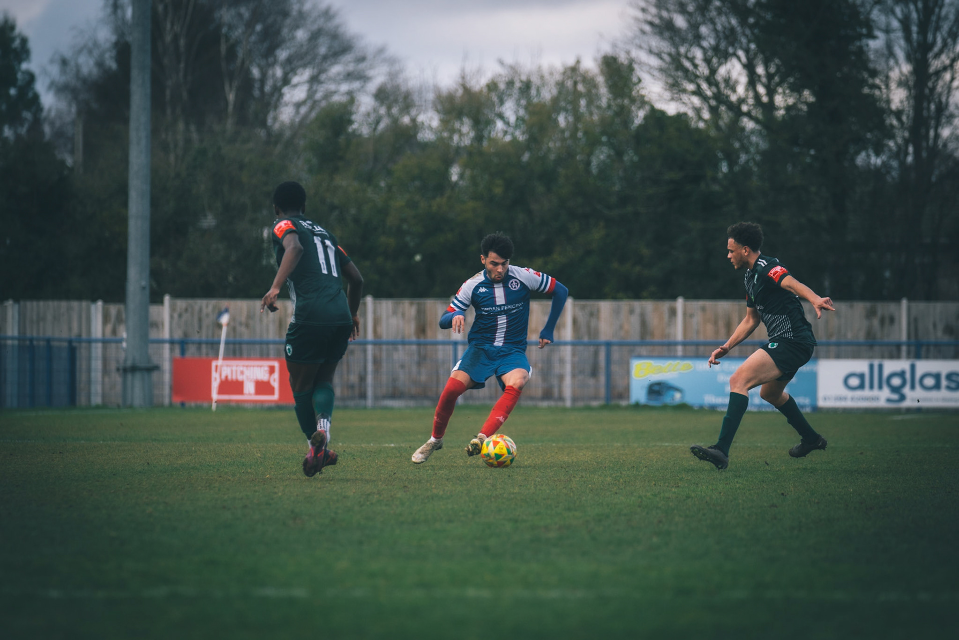 Ben Fowkes Driving at the bromsgrove defence to set up the winner for Will Davies