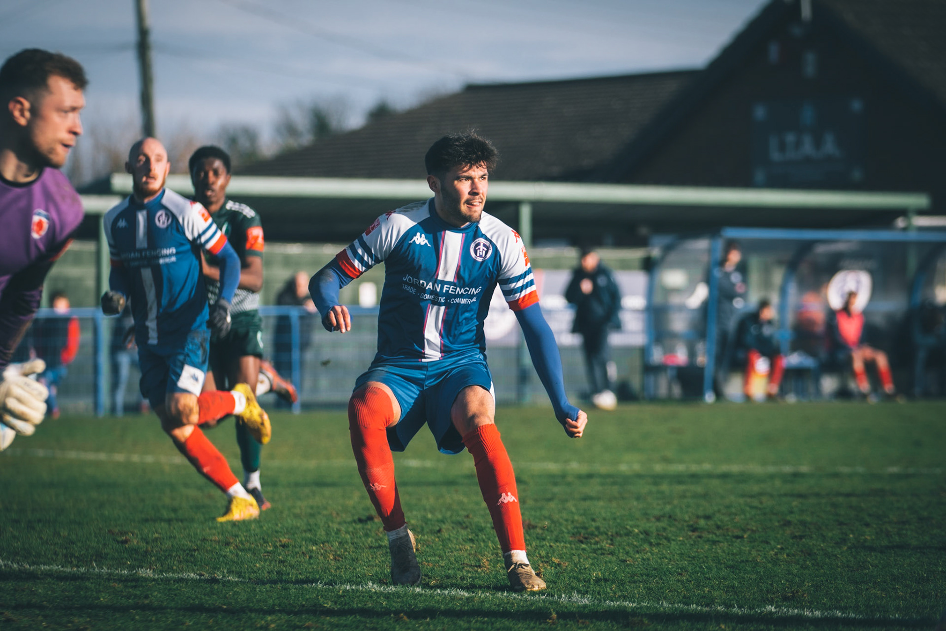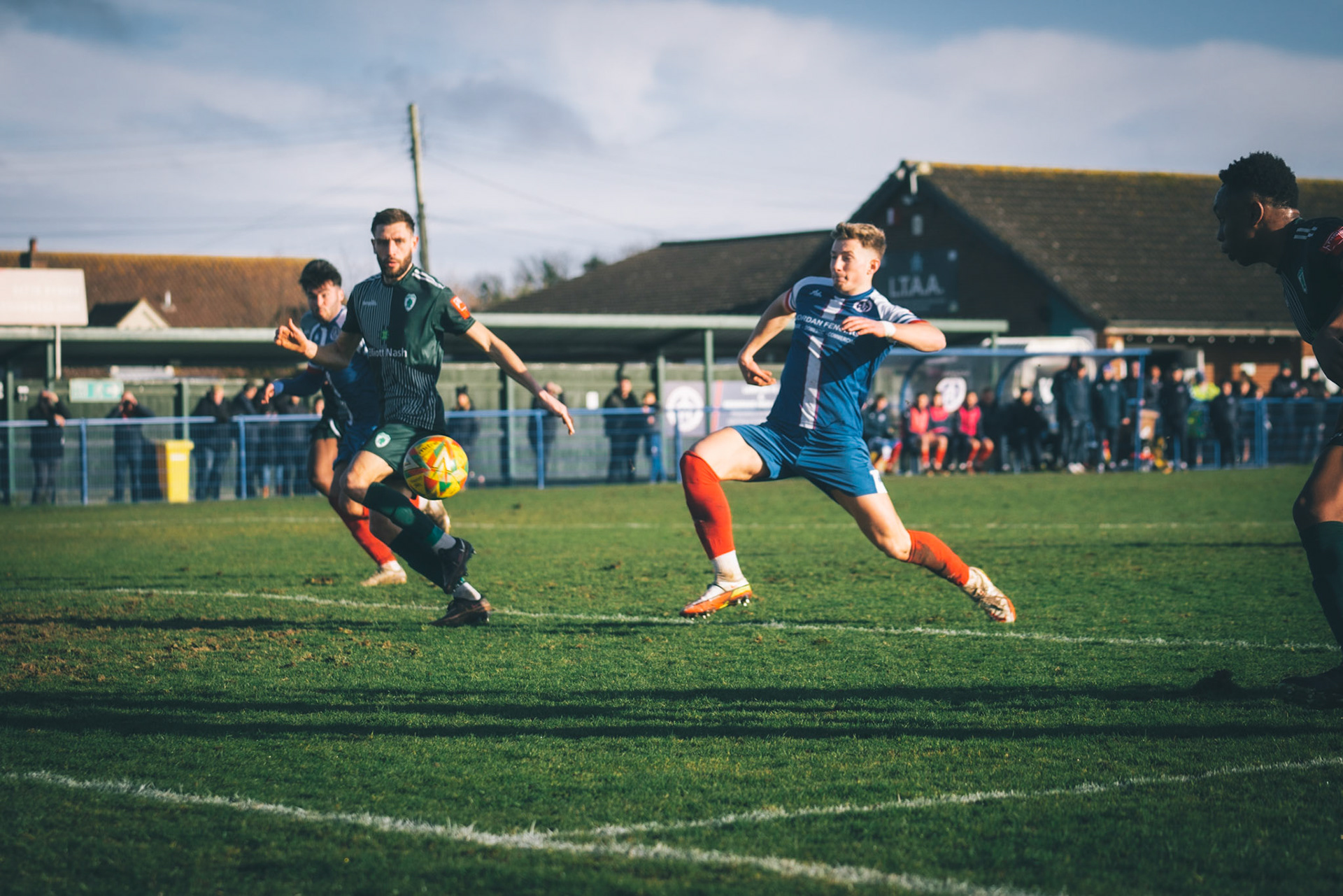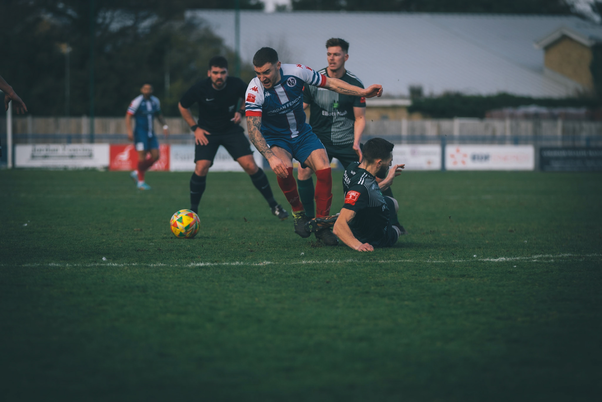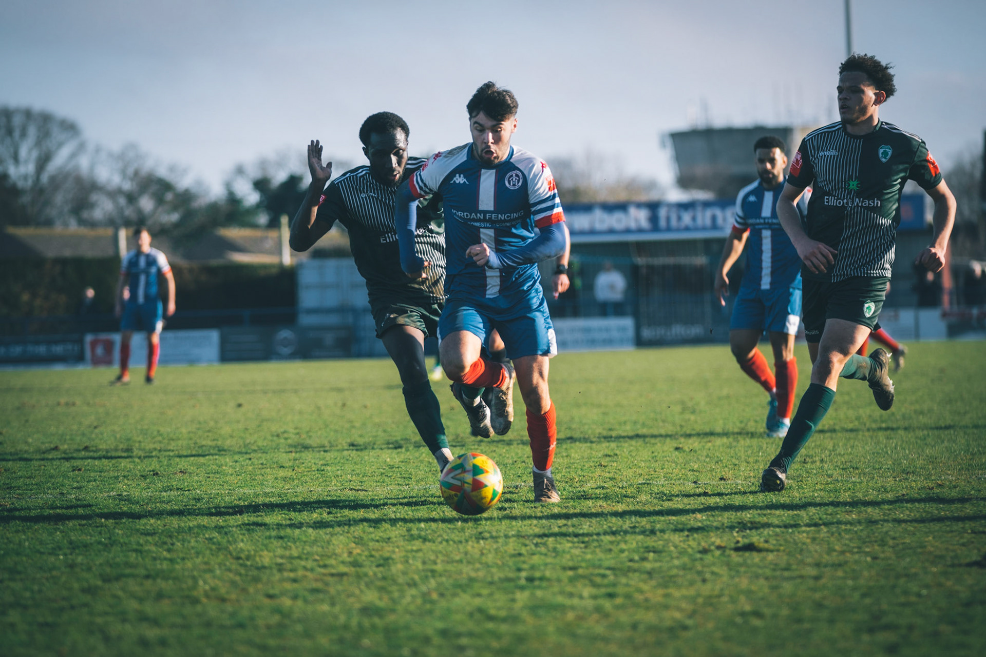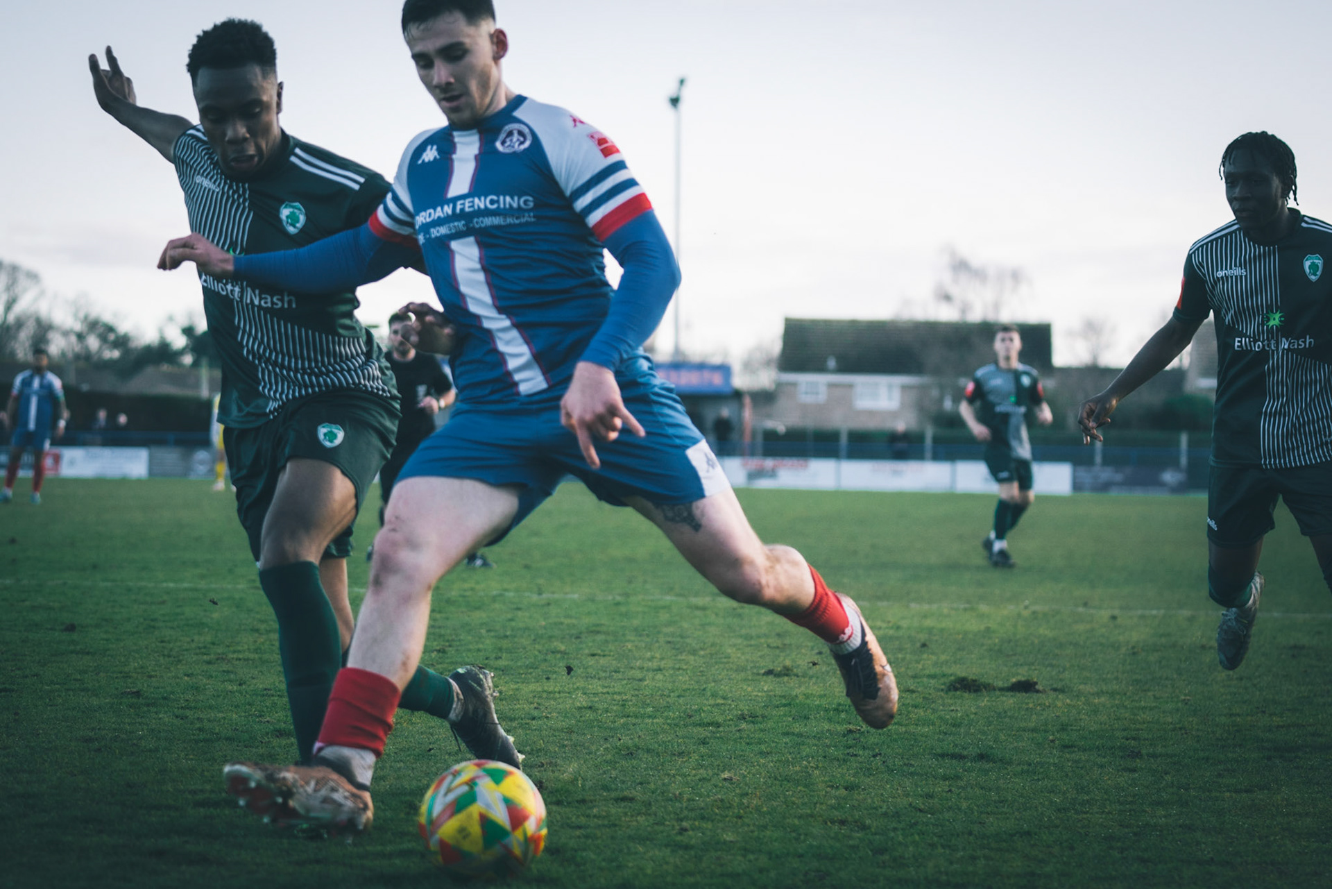 Ben Fowkes Driving at the bromsgrove defence to set up the winner for Will Davies