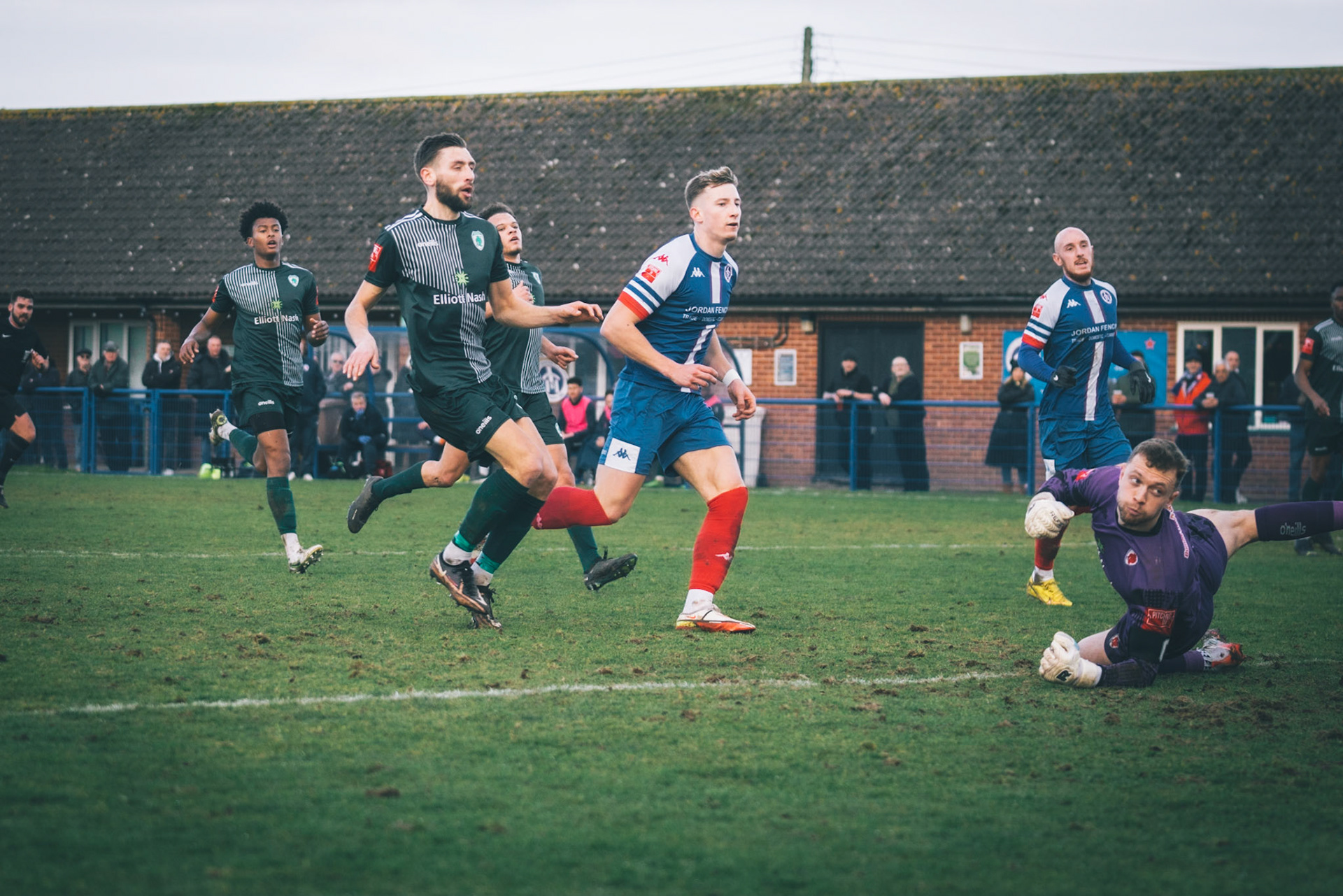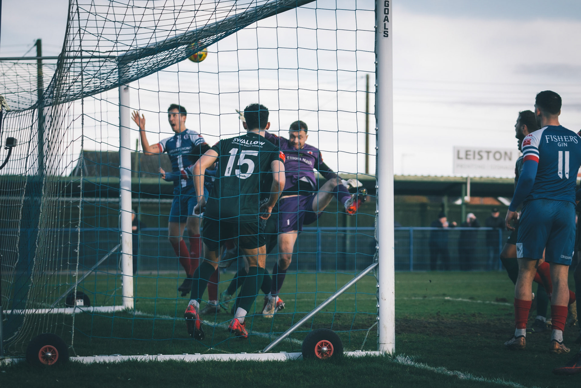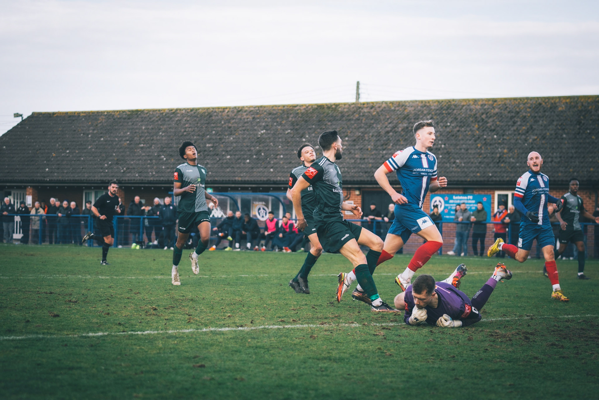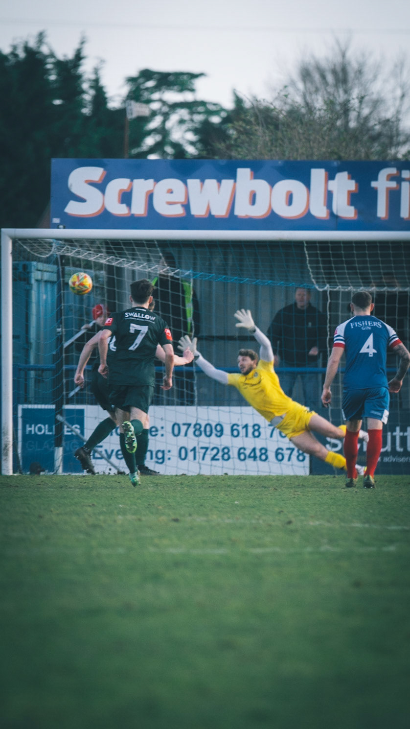 Sam Donkin pulling off a point blank save in the 93rd min to keep the score 3-2 to leiston