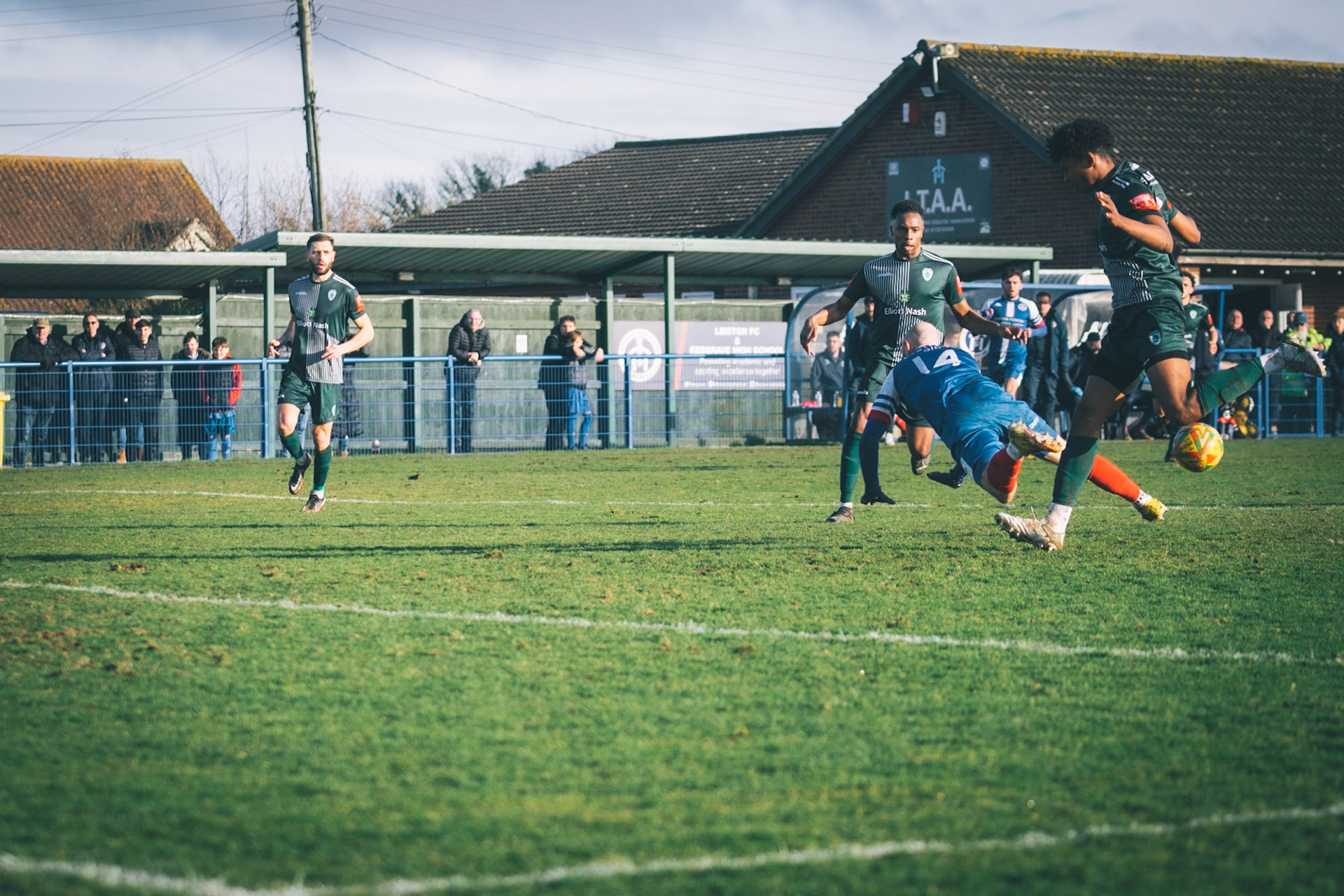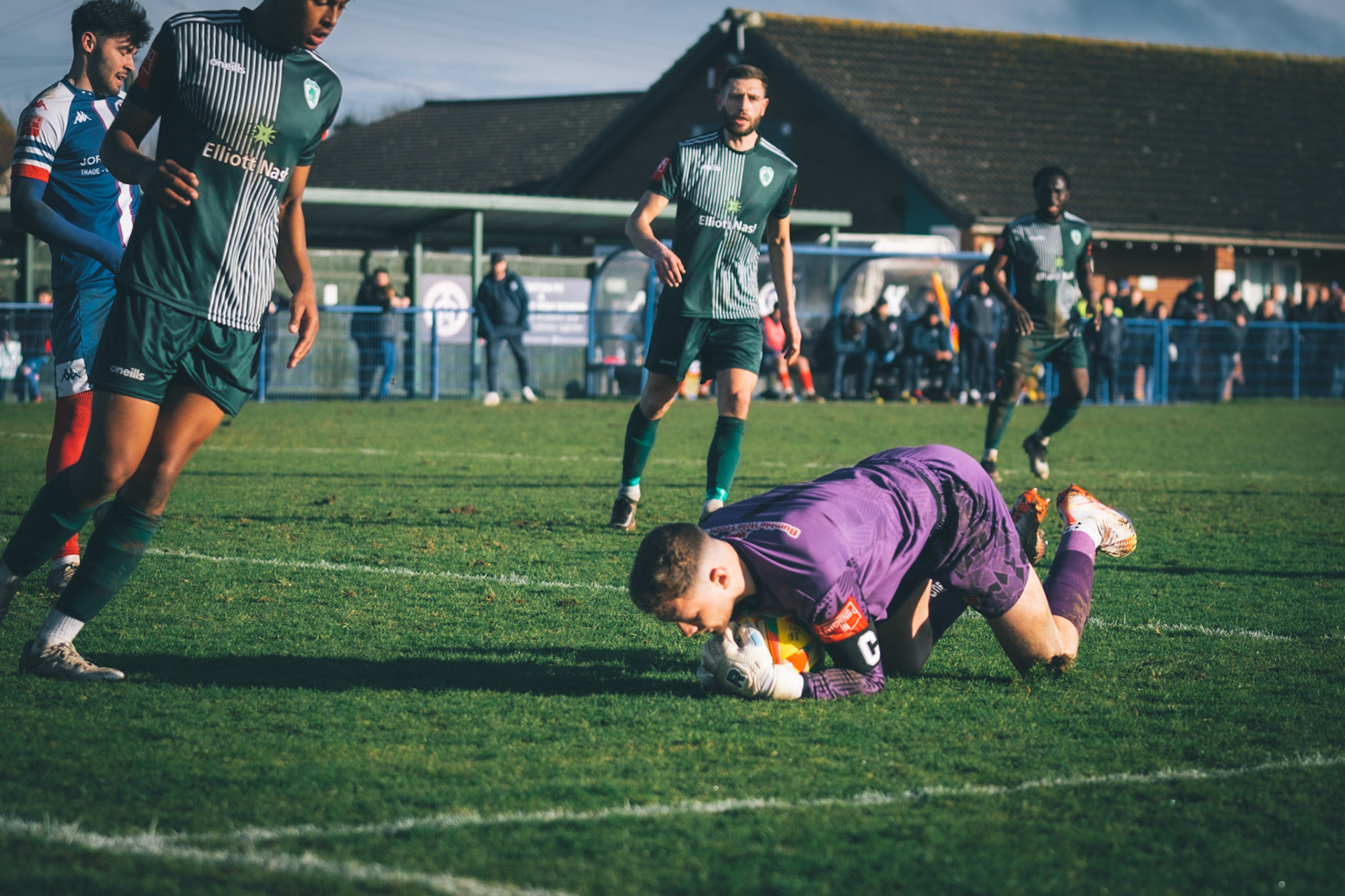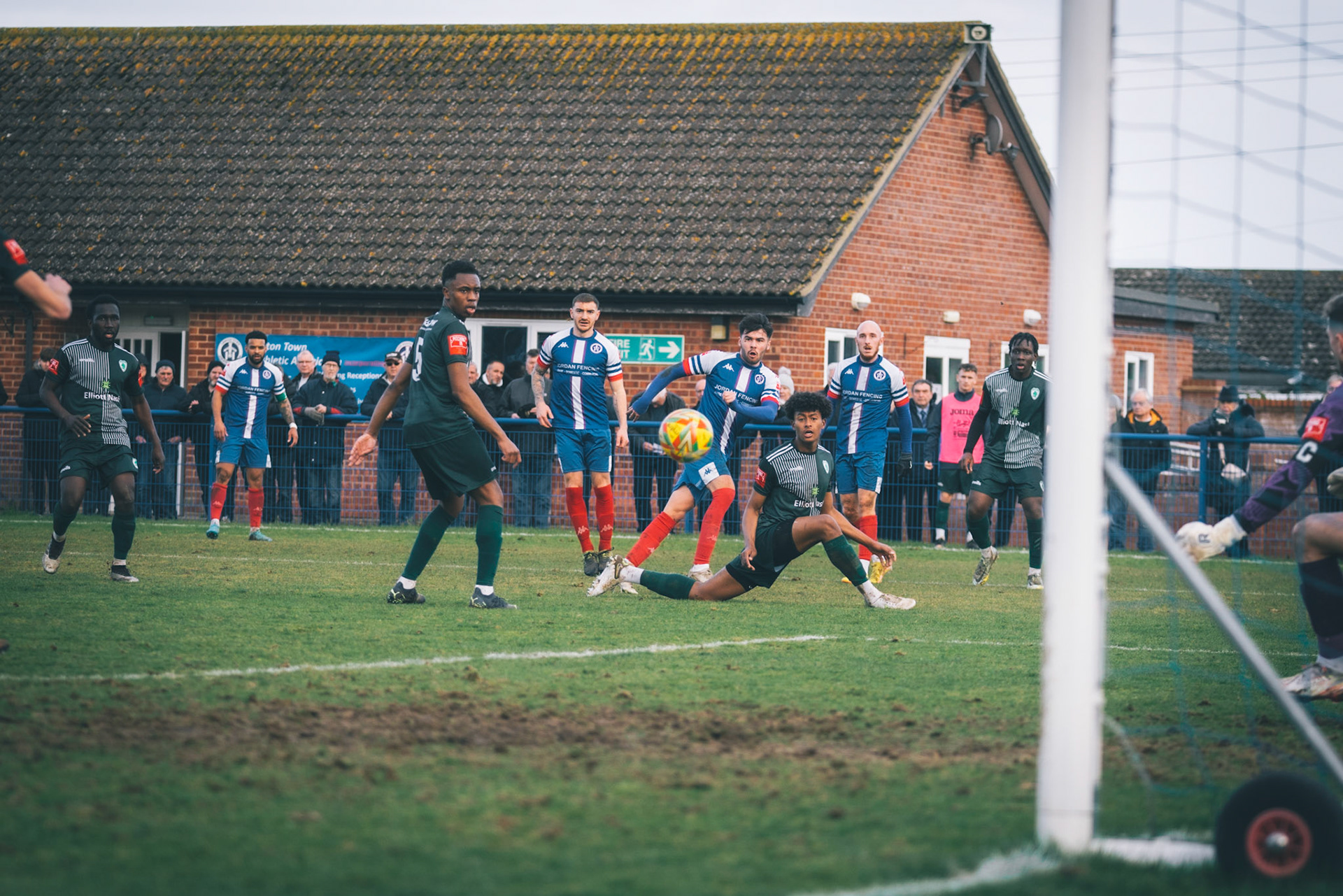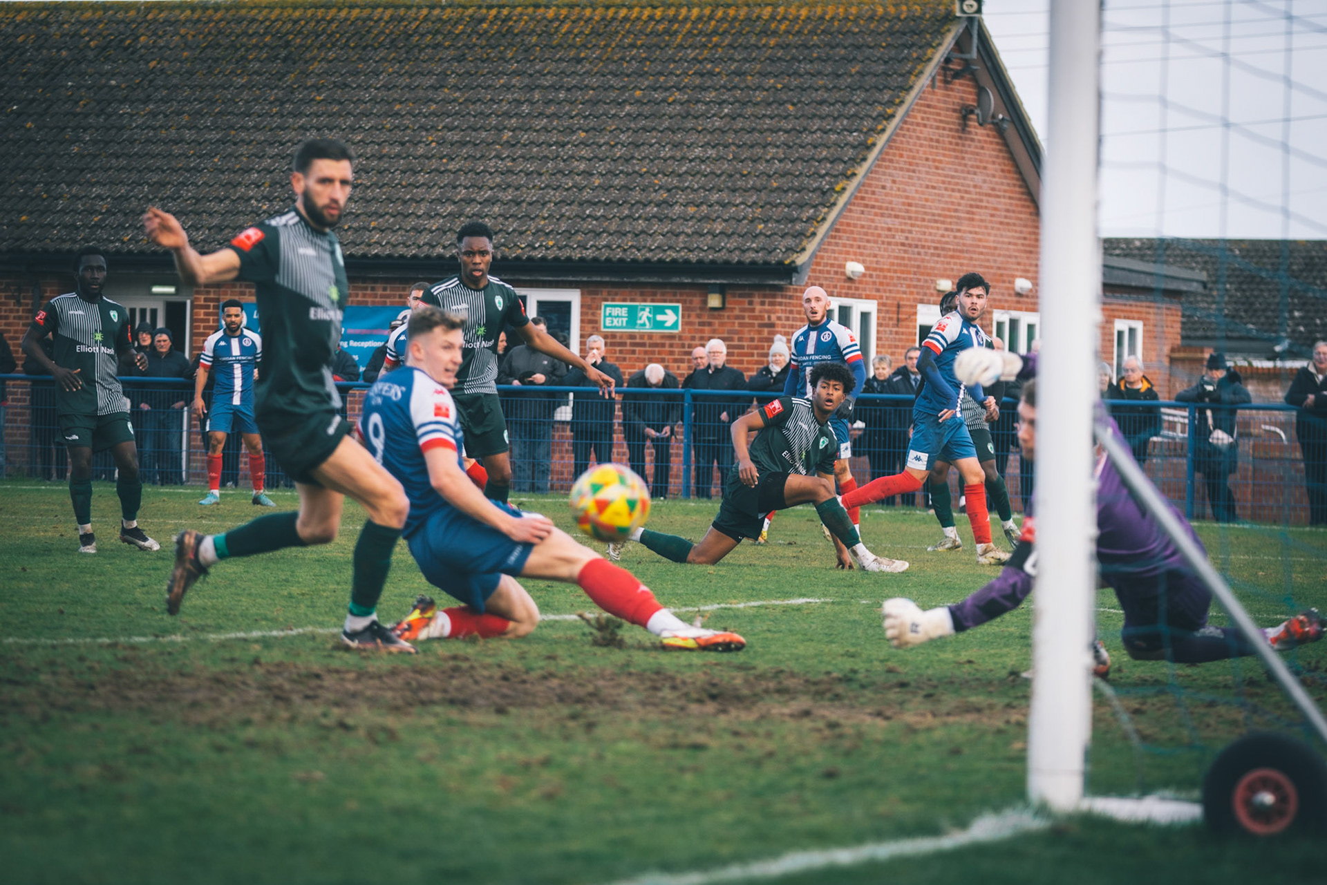 Sam Donkin pulling off a point blank save in the 93rd min to keep the score 3-2 to leiston