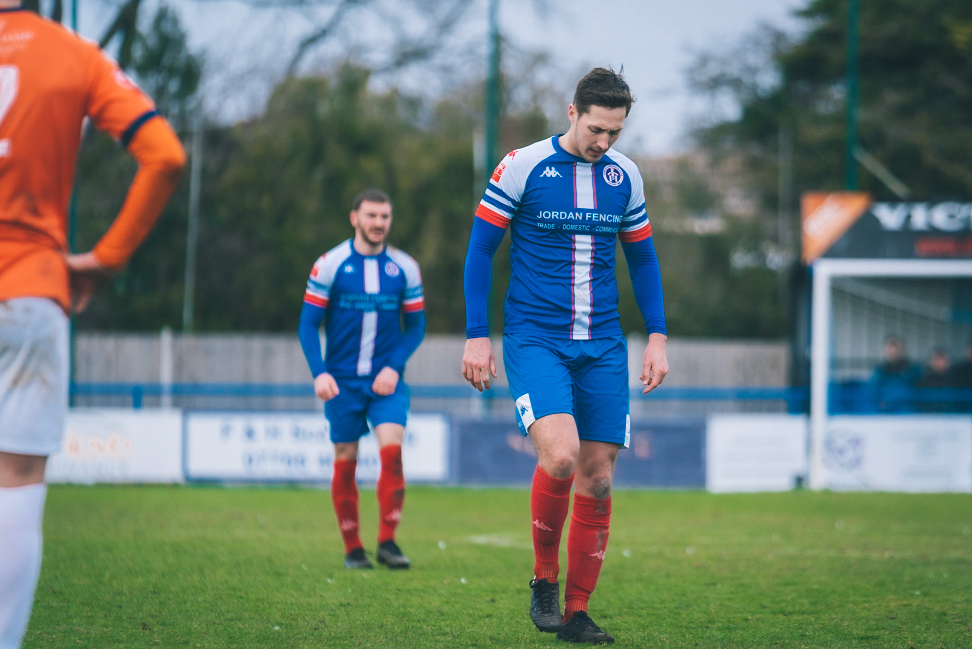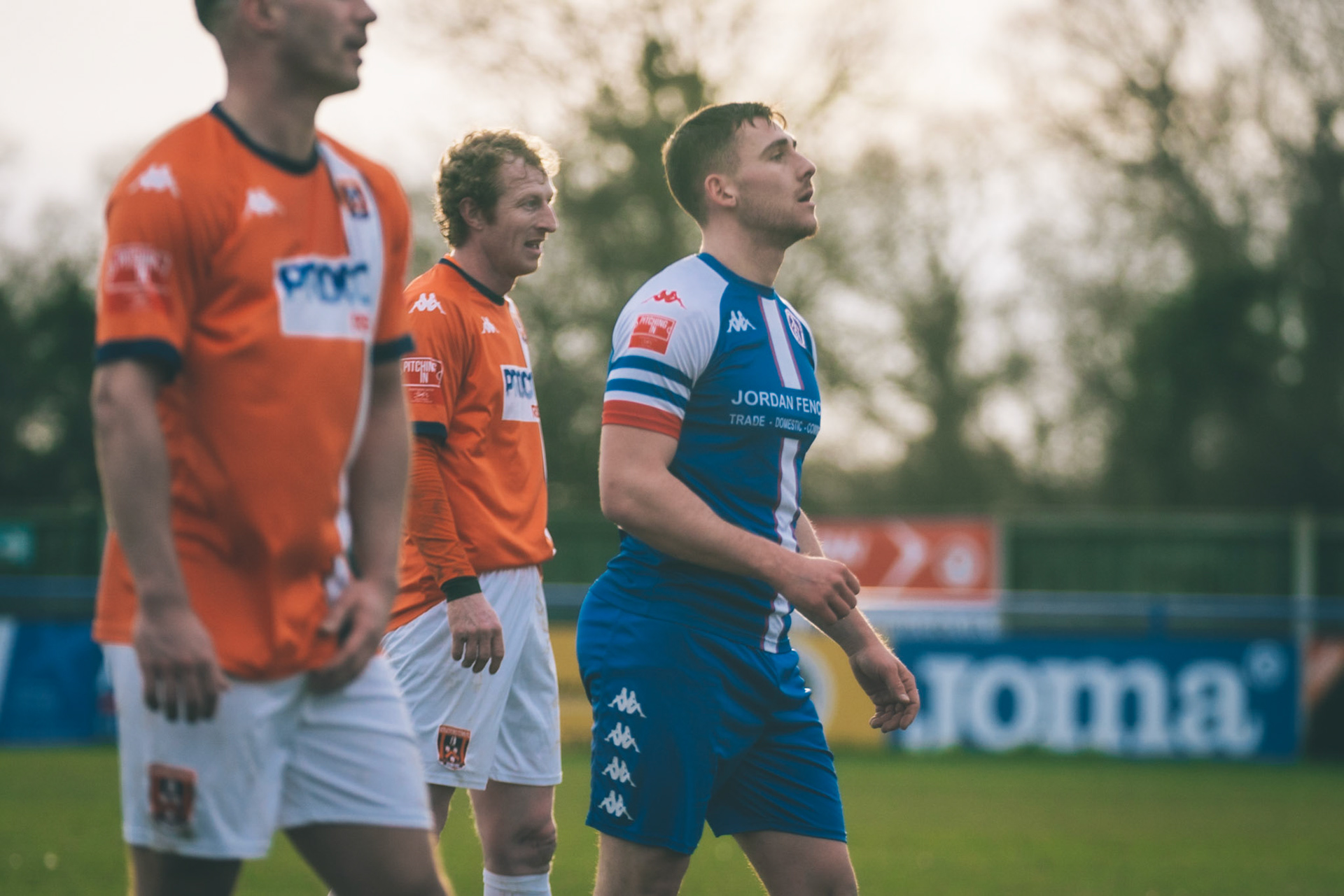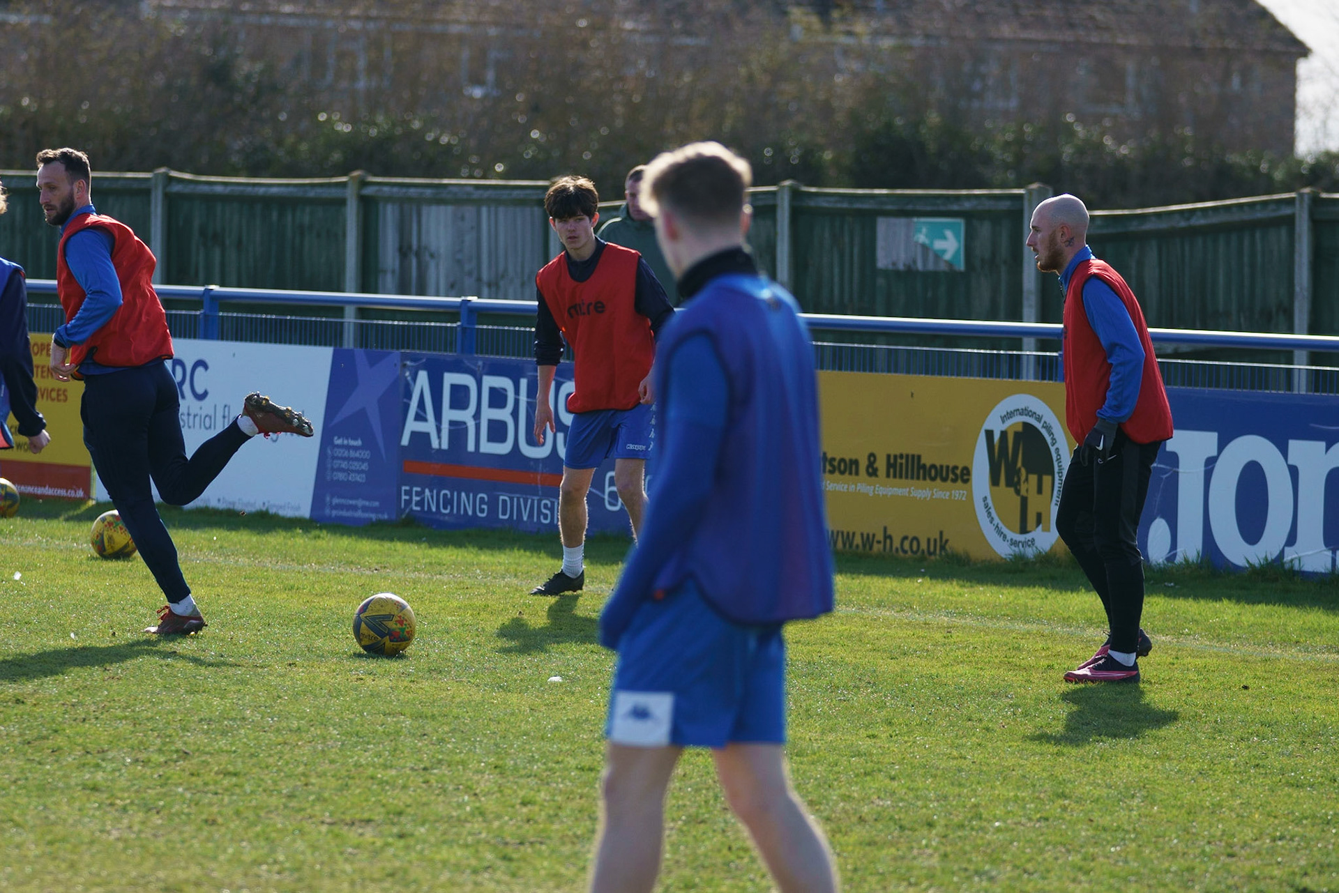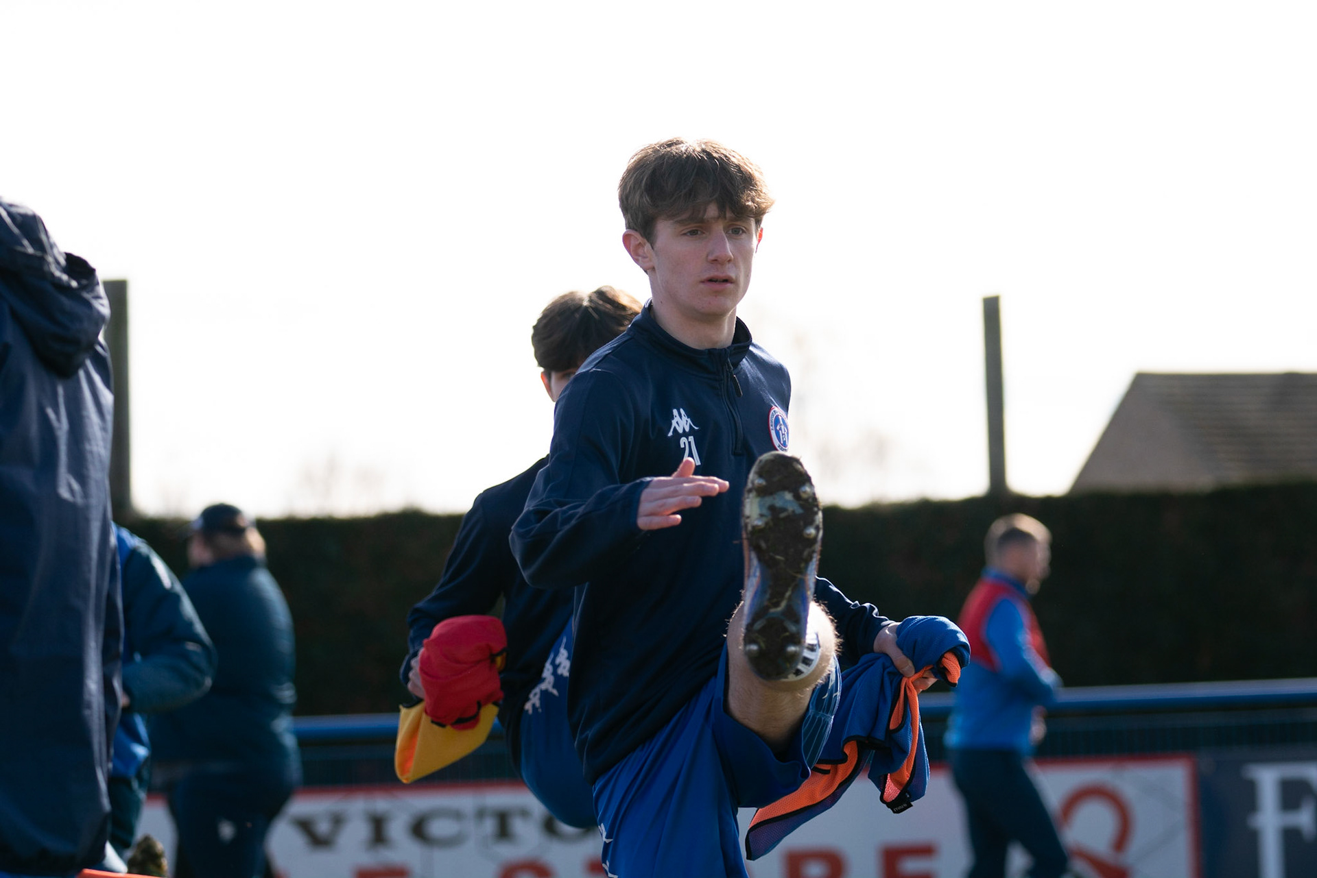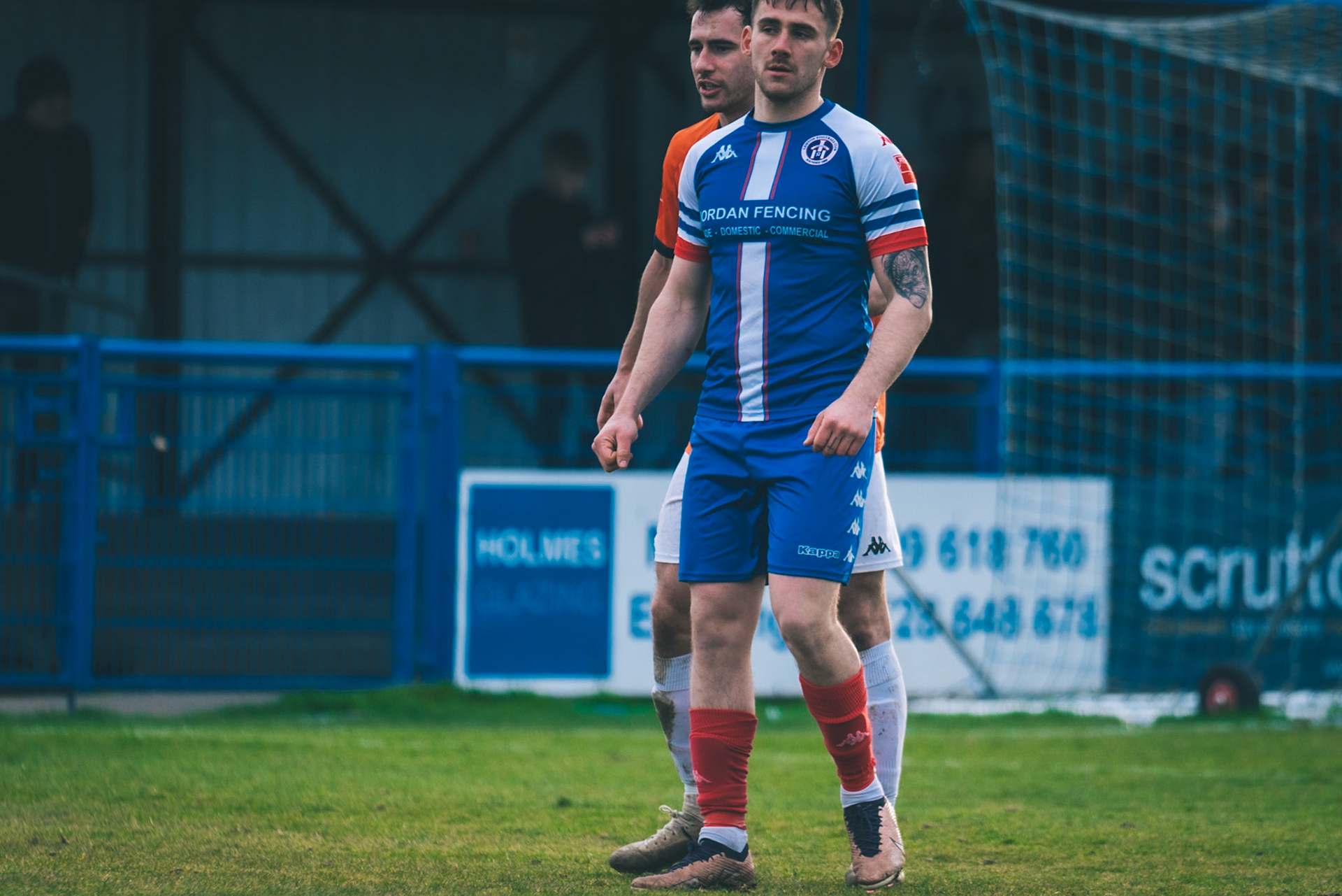 Adam Mills striking the ball with the stratford g.k pulling off a good save to keep it 0-0