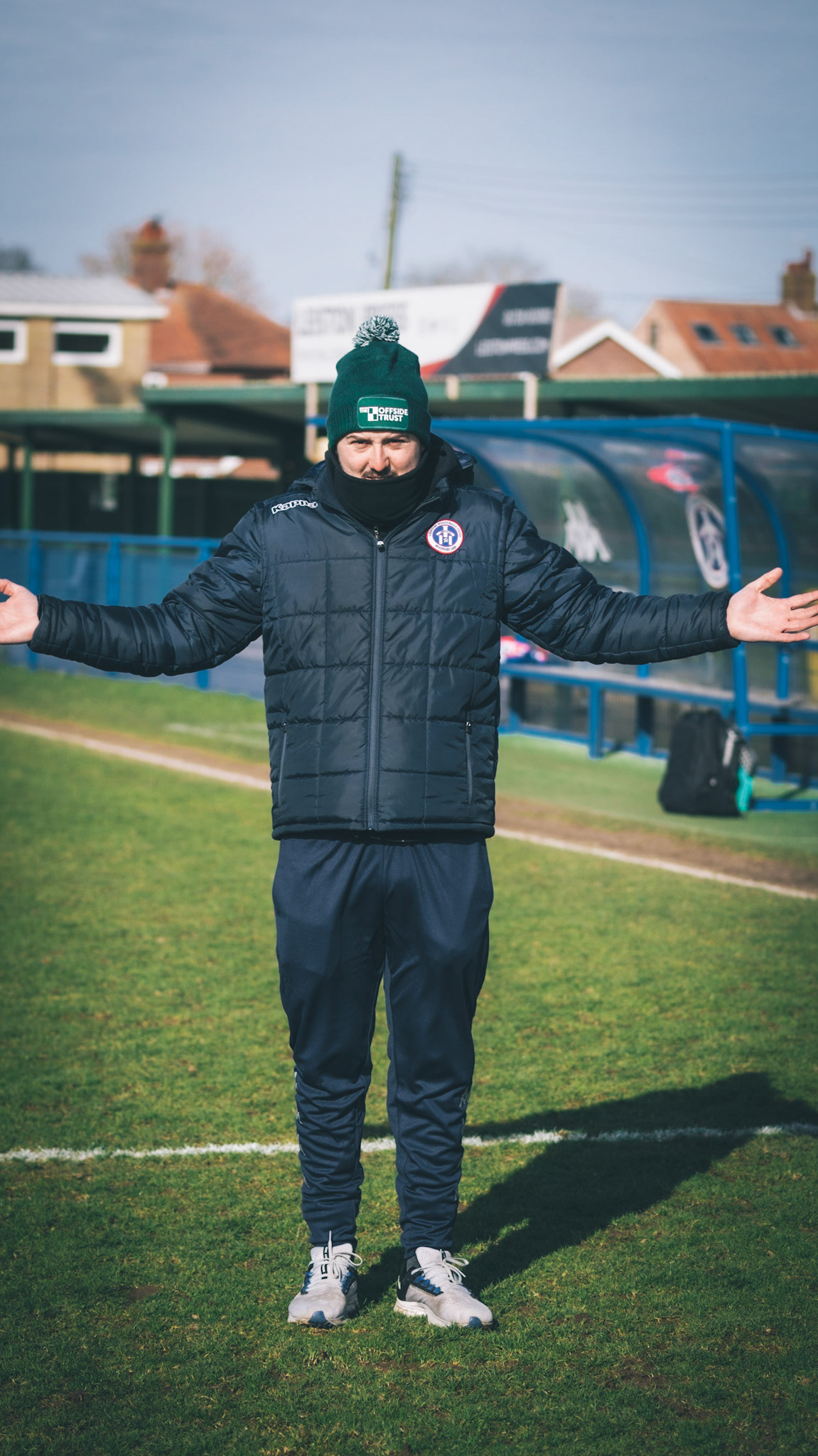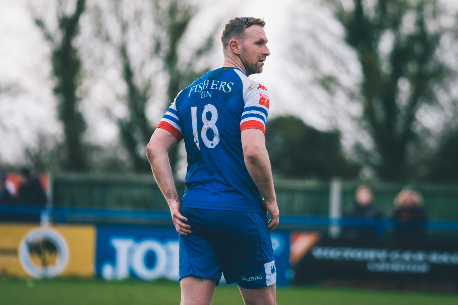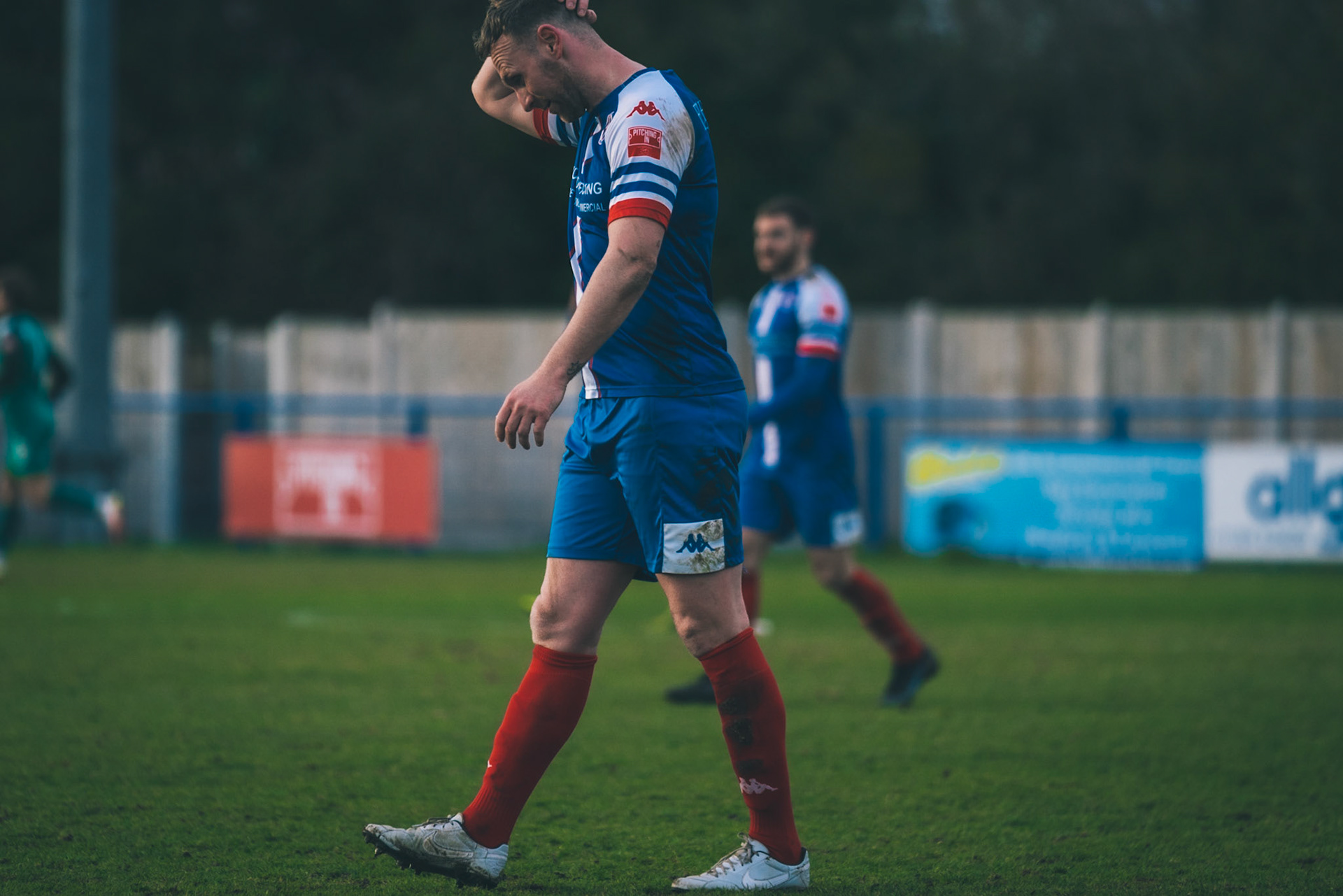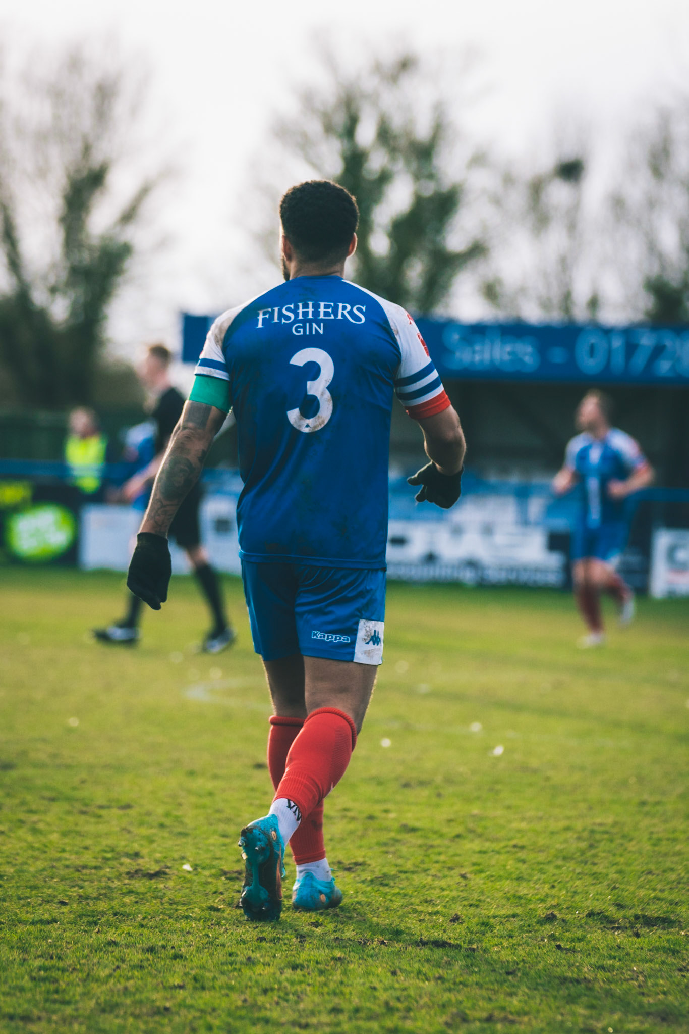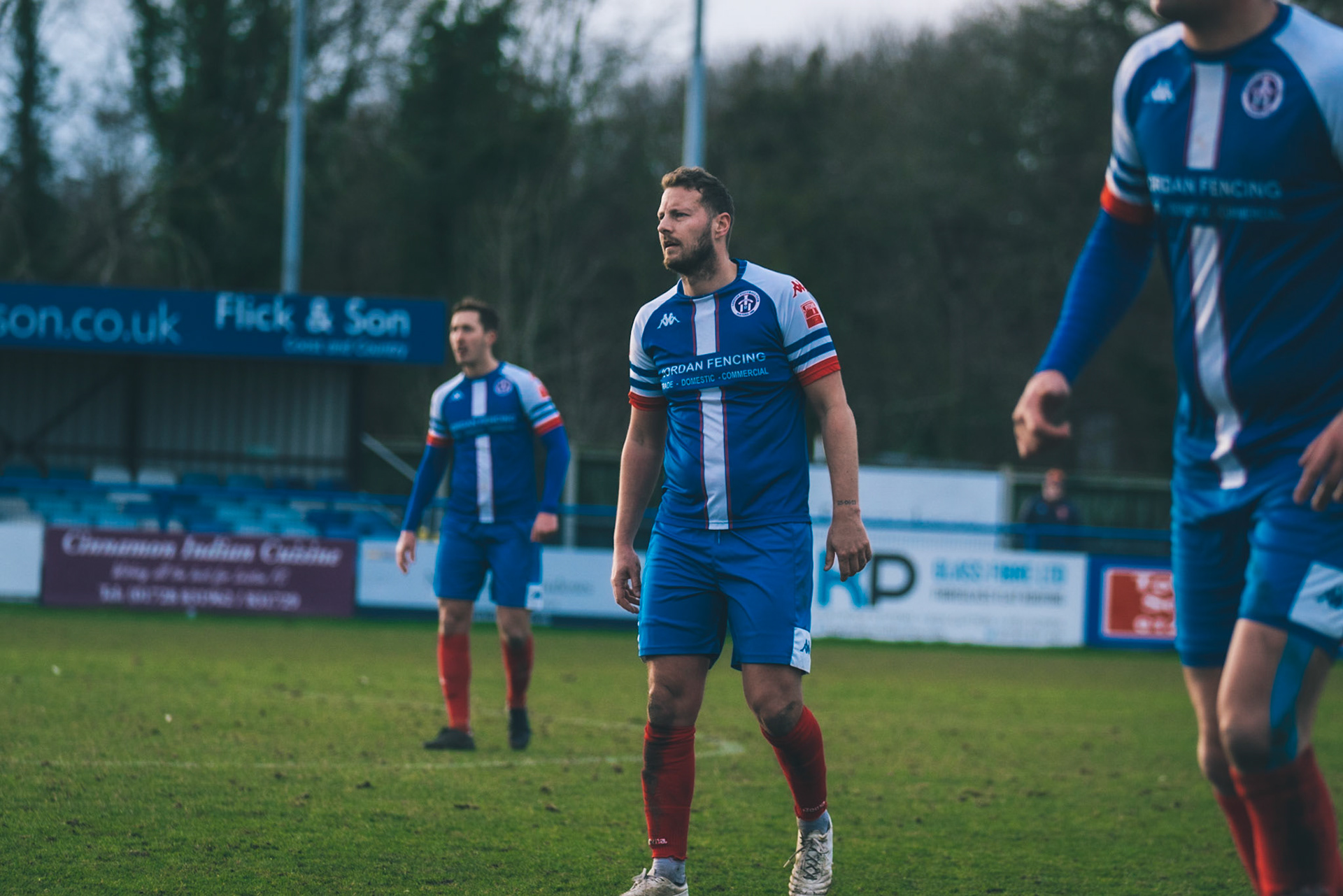 Adam Mills striking the ball with the stratford g.k pulling off a good save to keep it 0-0