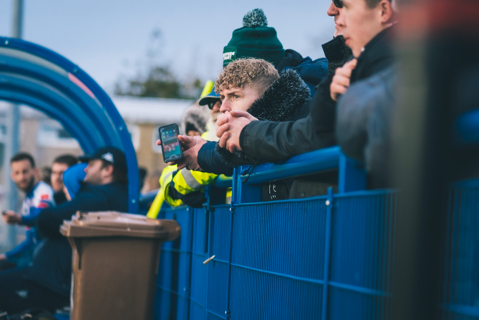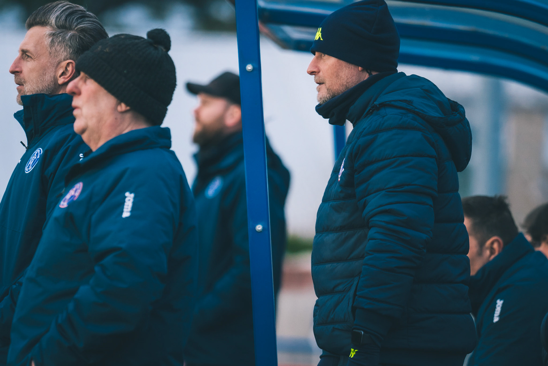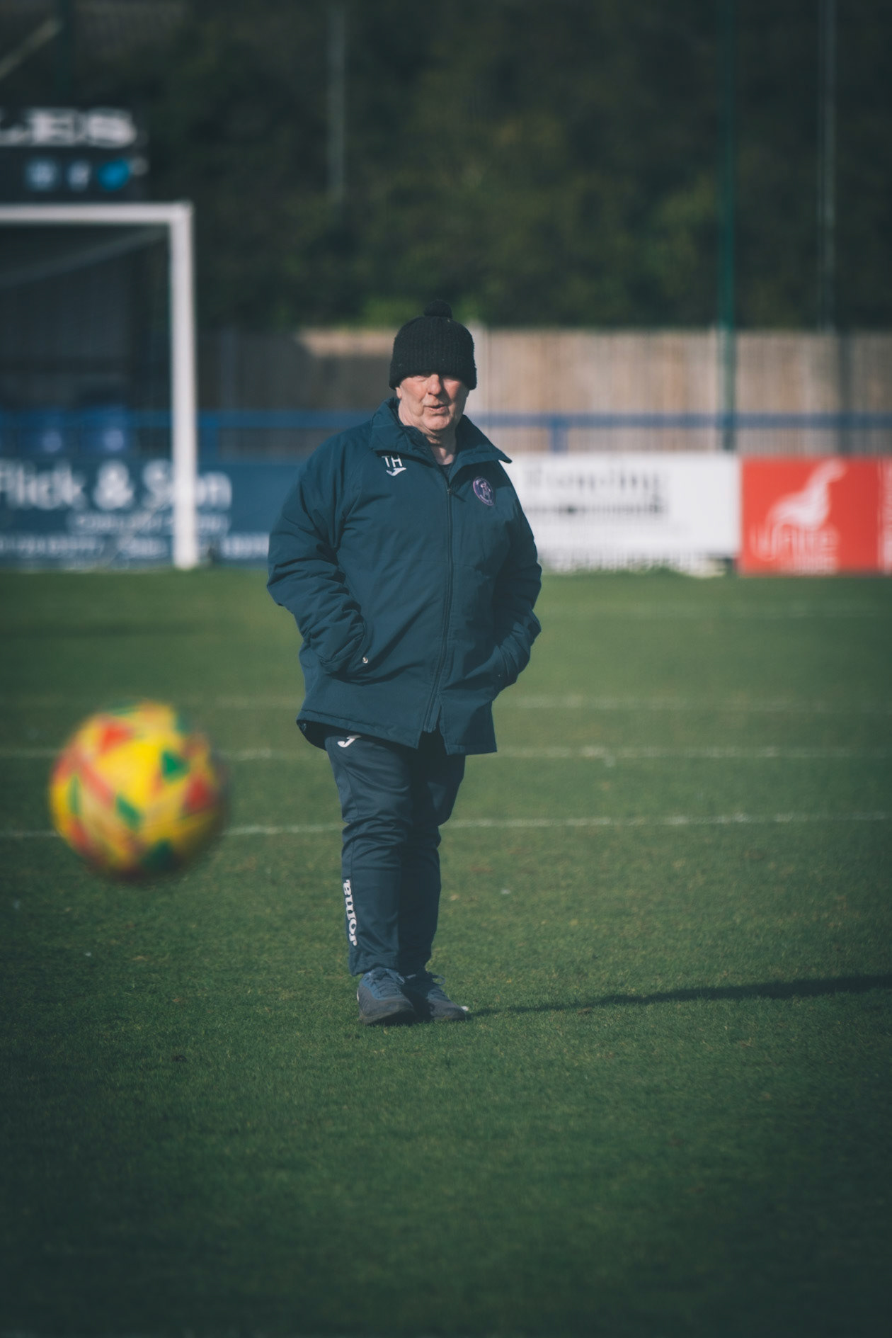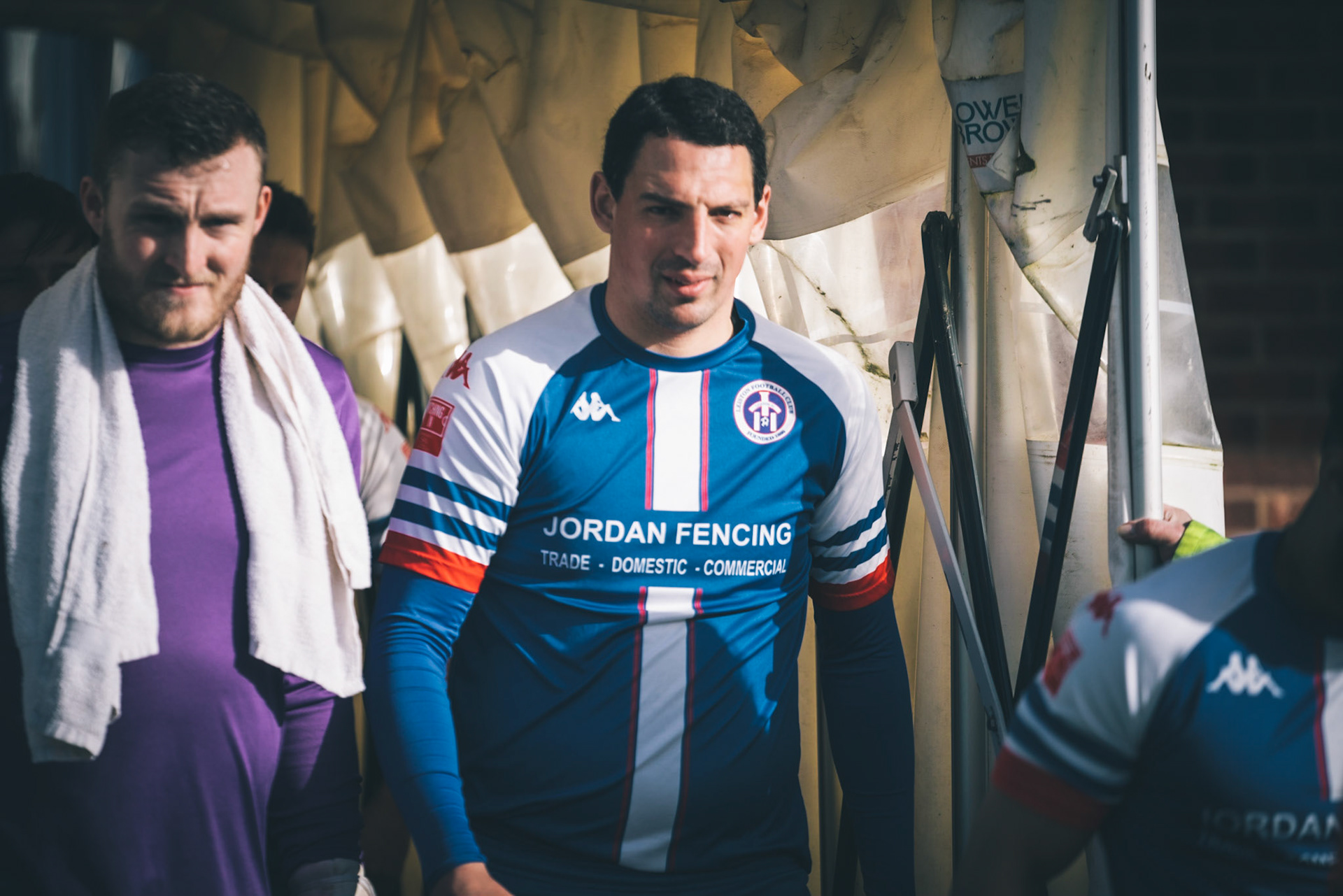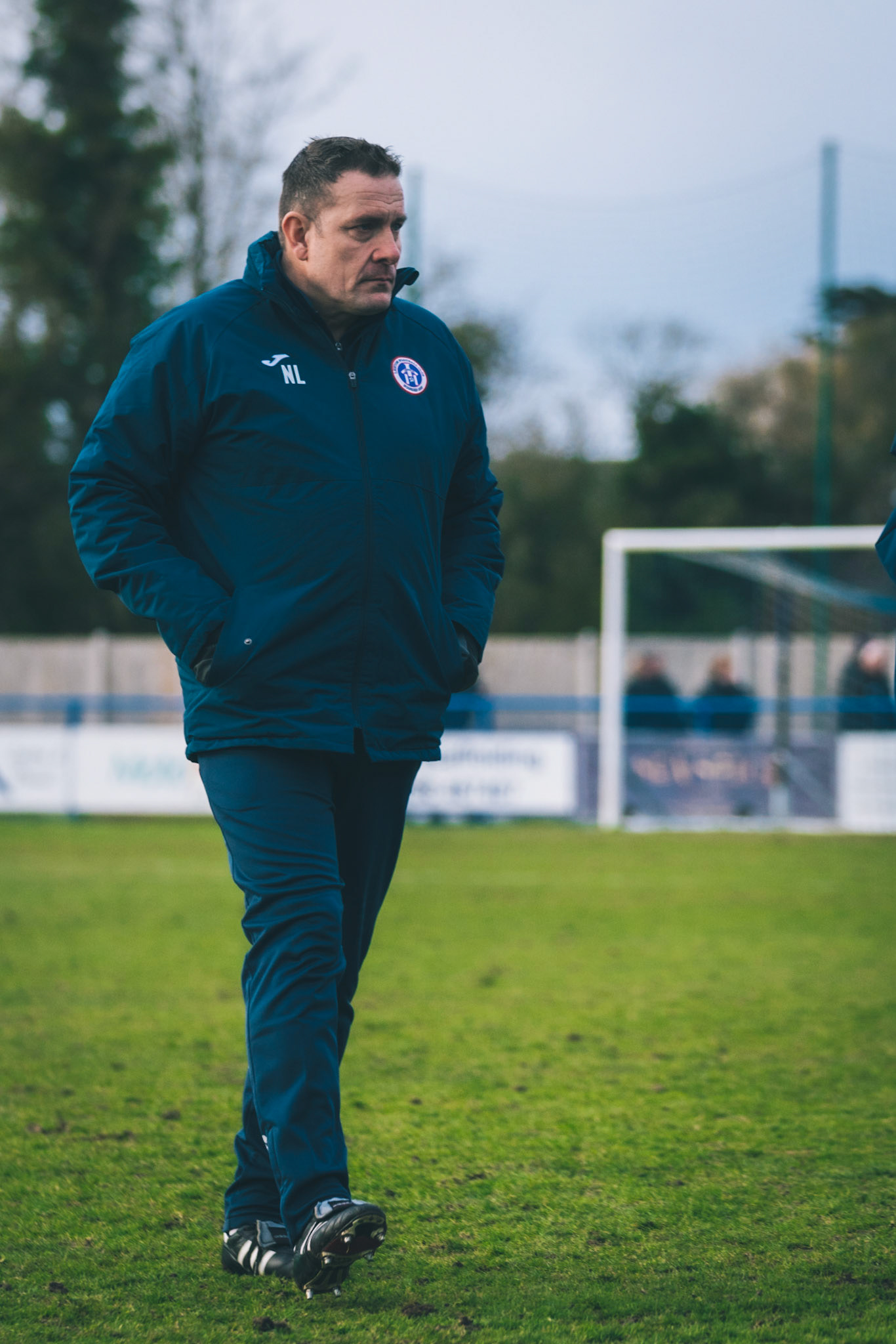 Adam Mills striking the ball with the stratford g.k pulling off a good save to keep it 0-0