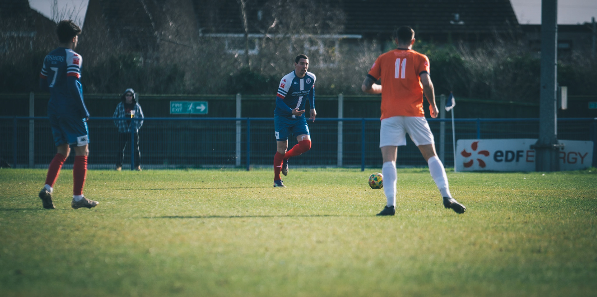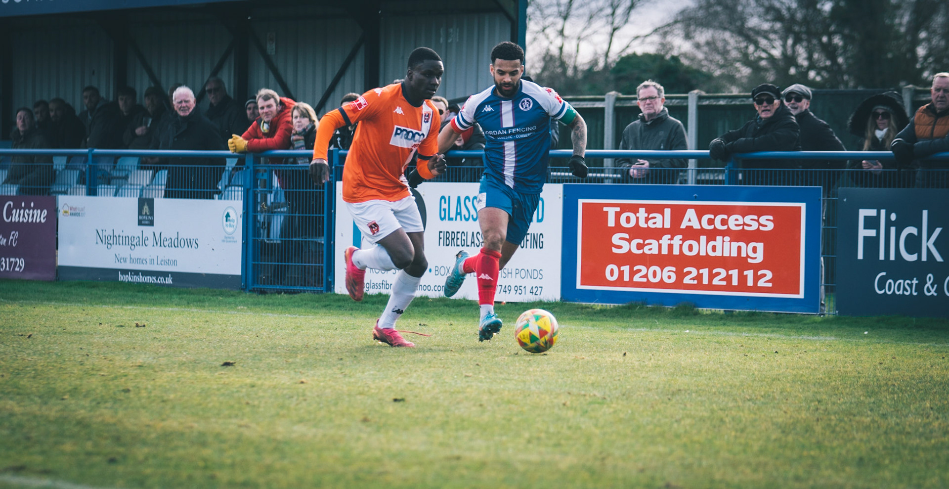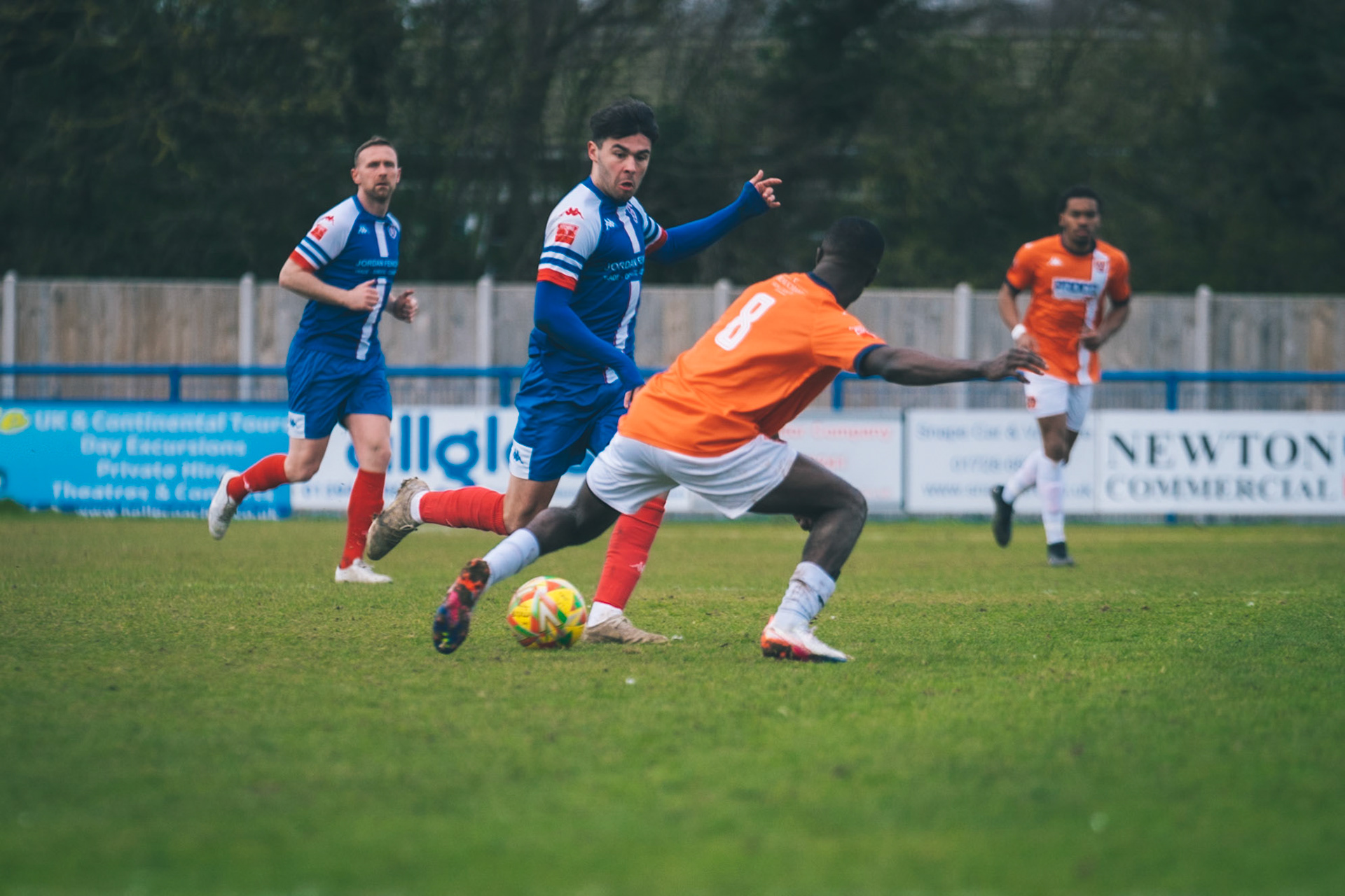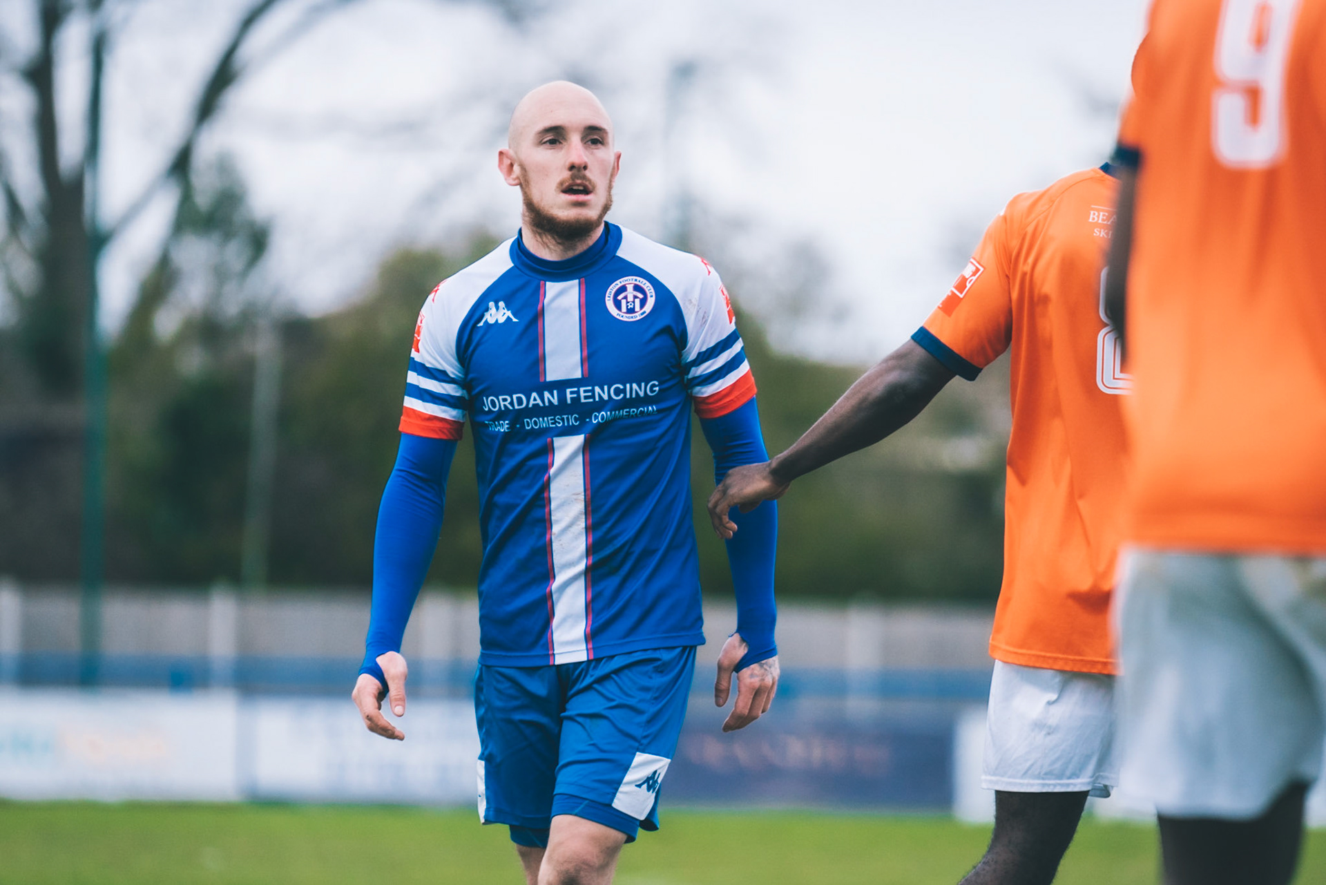 Fin Barnes taking on Stratford full back