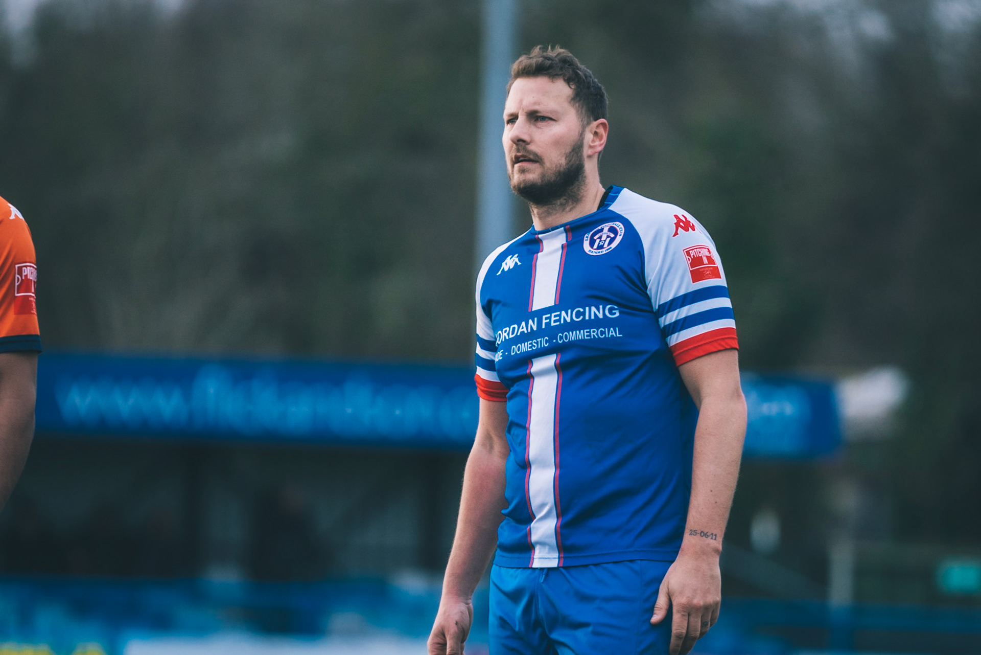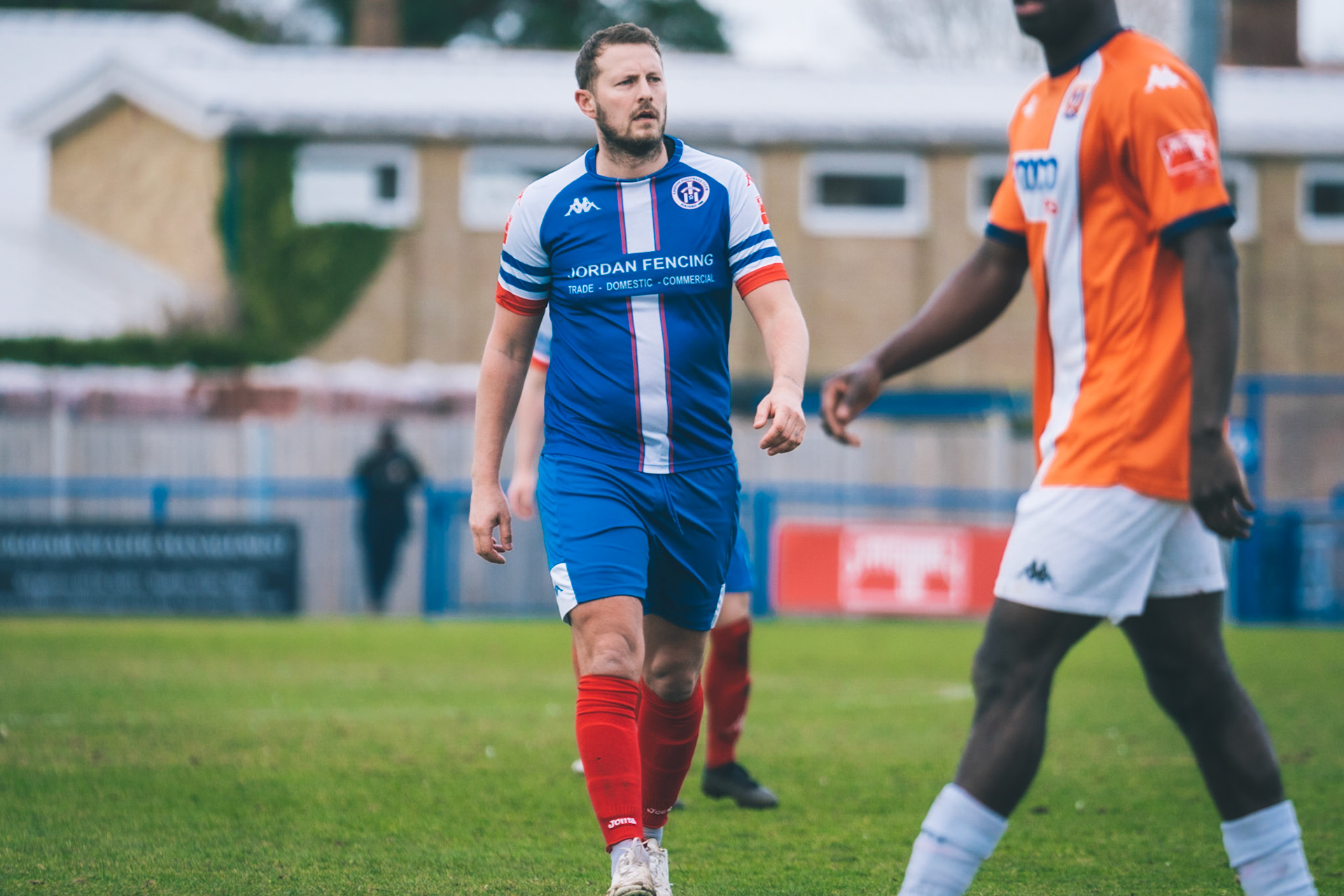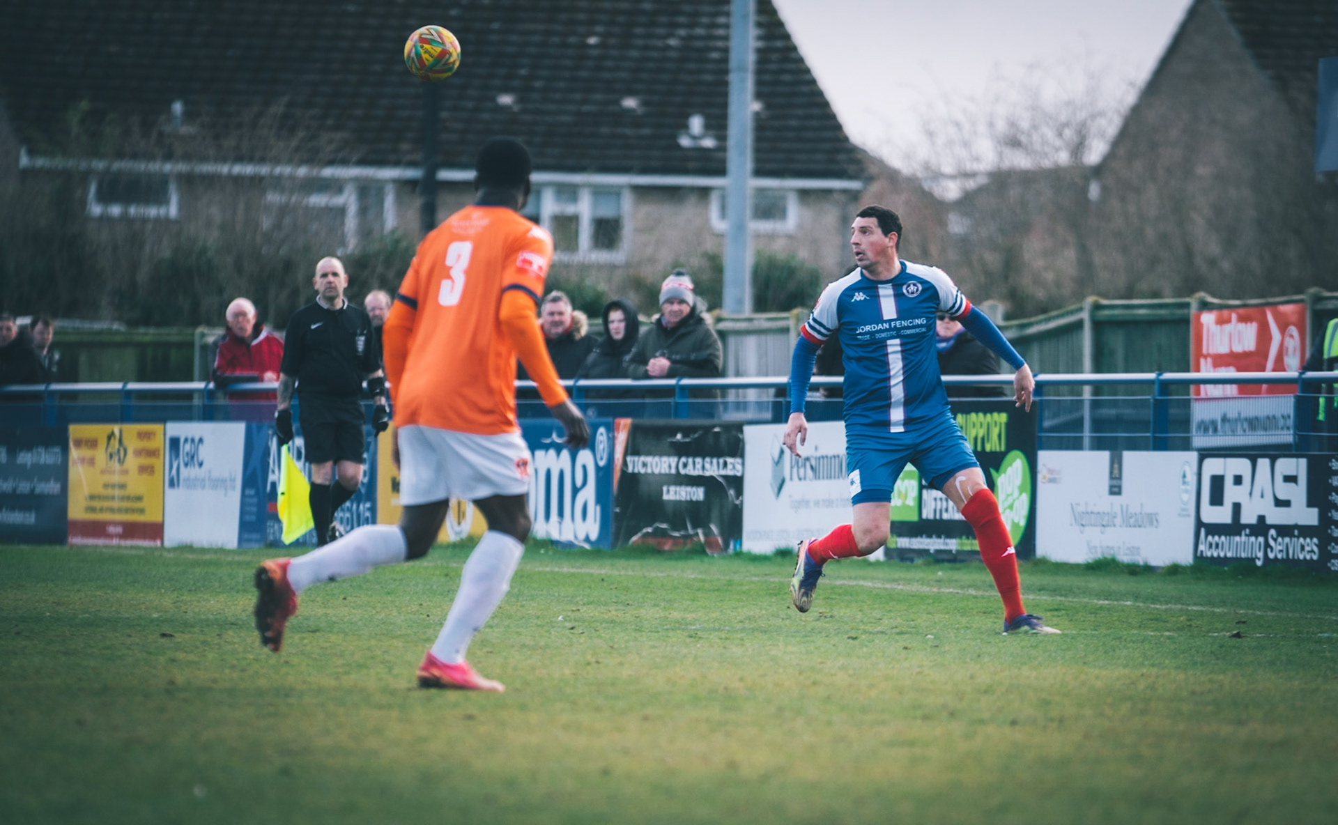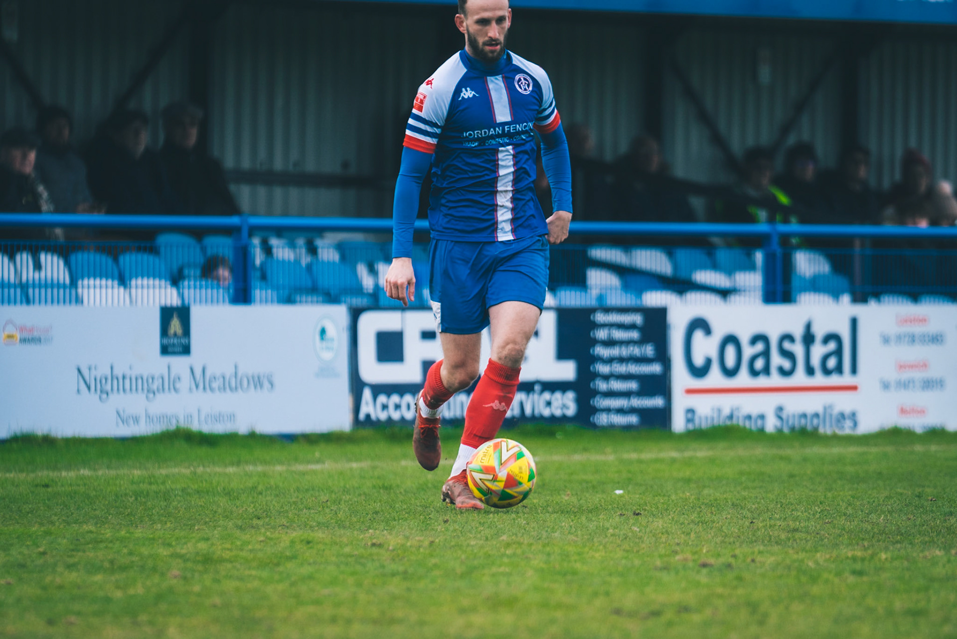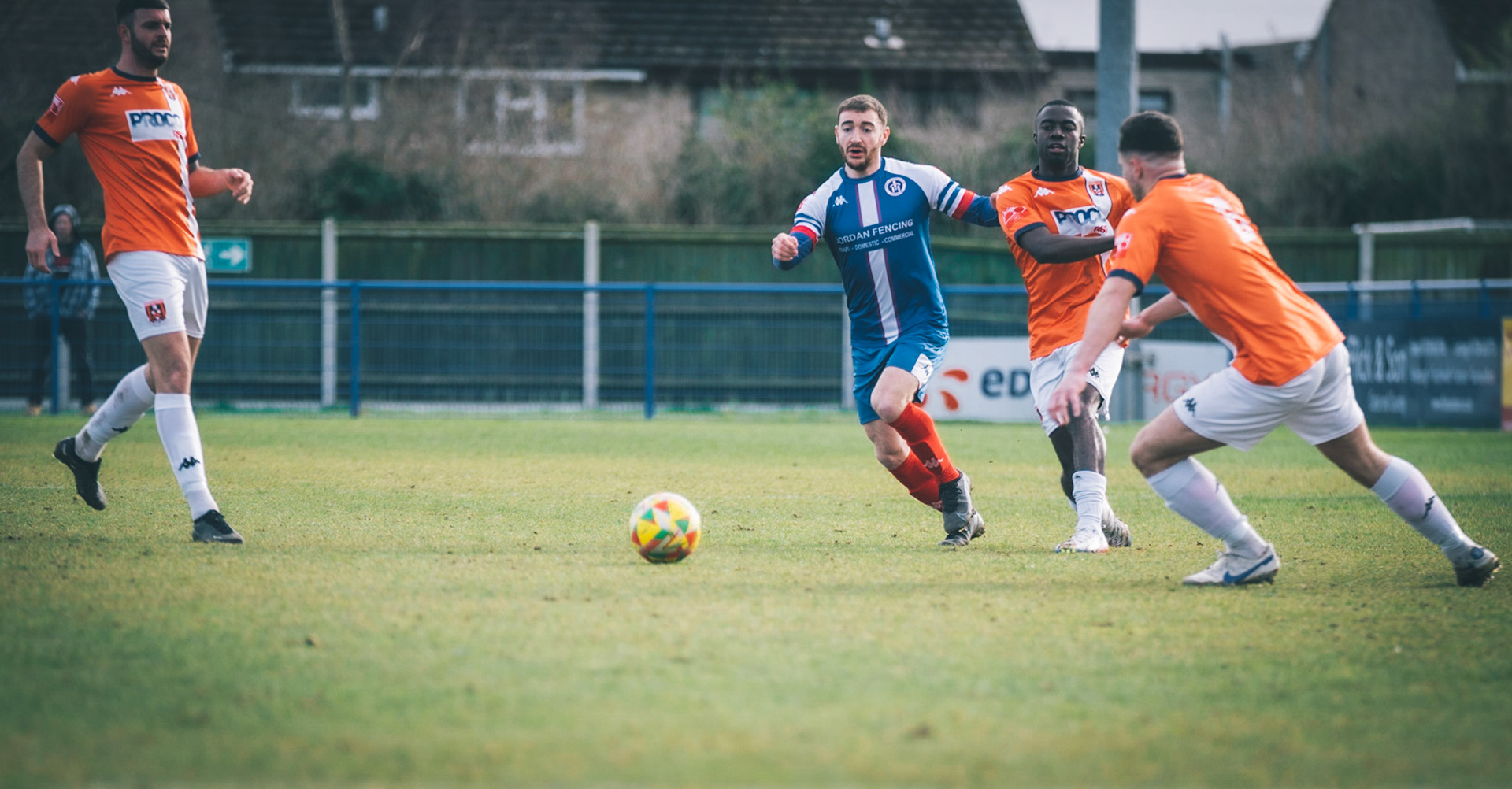 Fin Barnes taking on Stratford full back