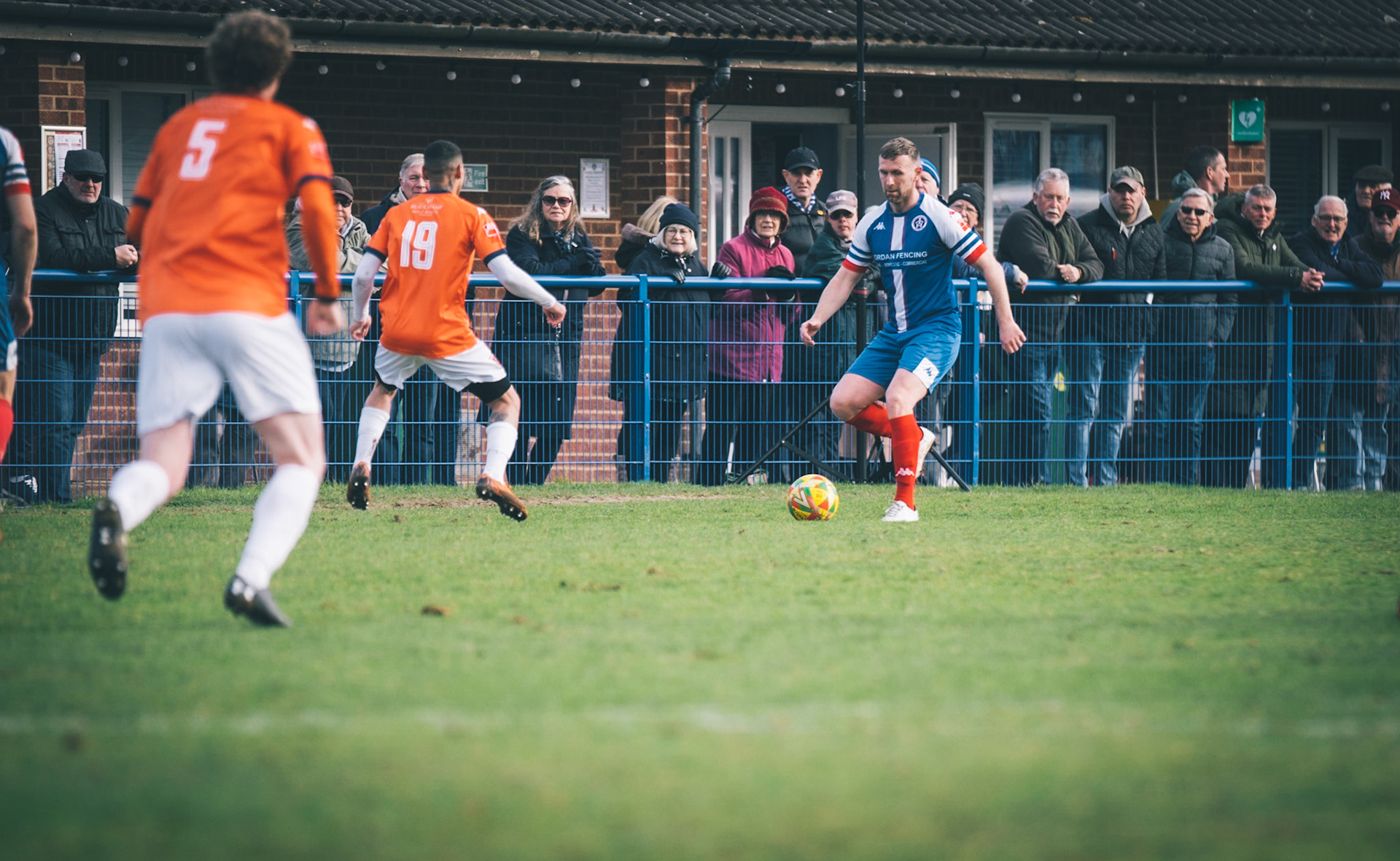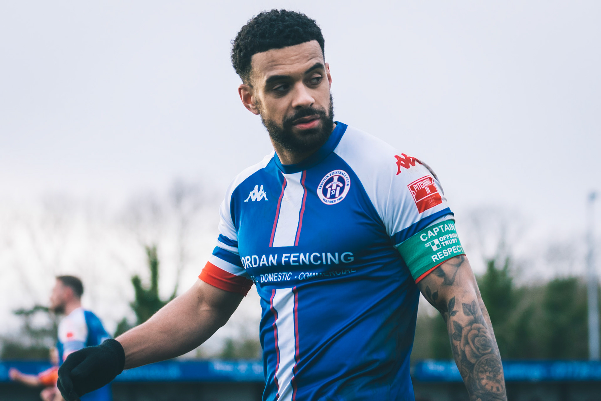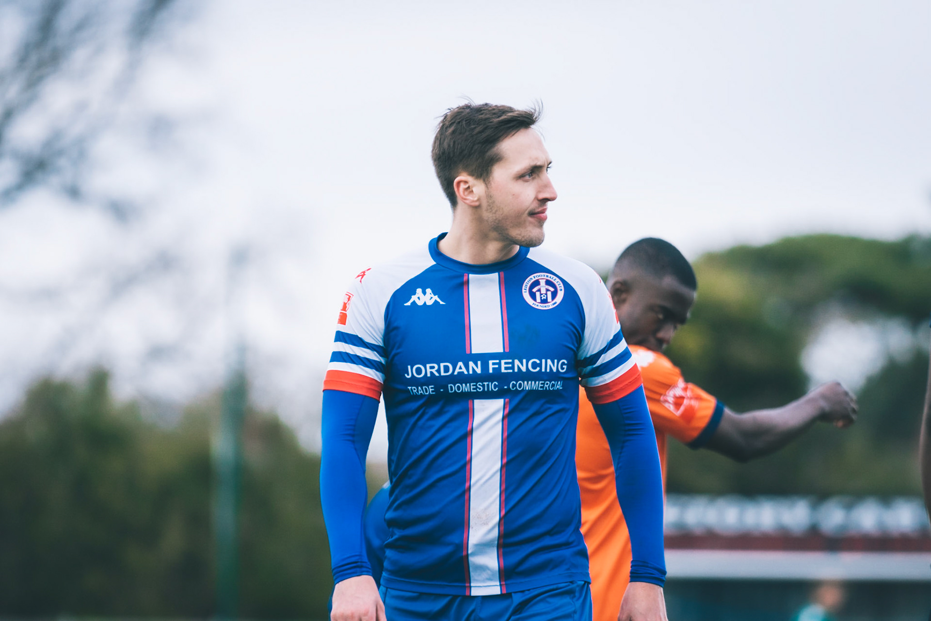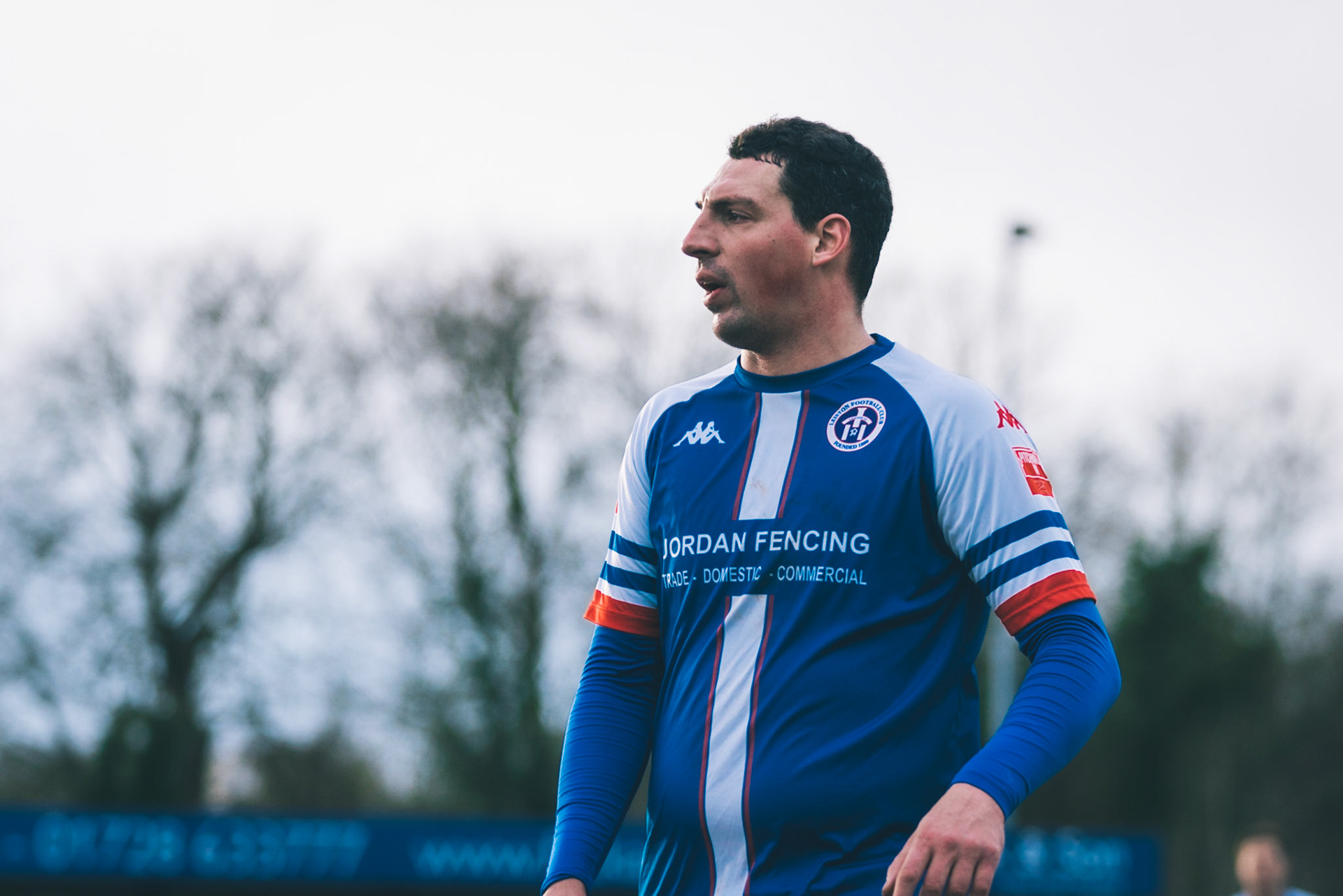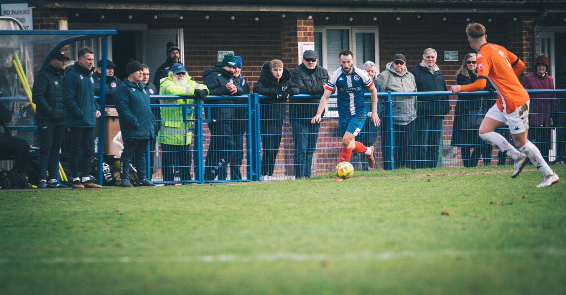 Fin Barnes taking on Stratford full back