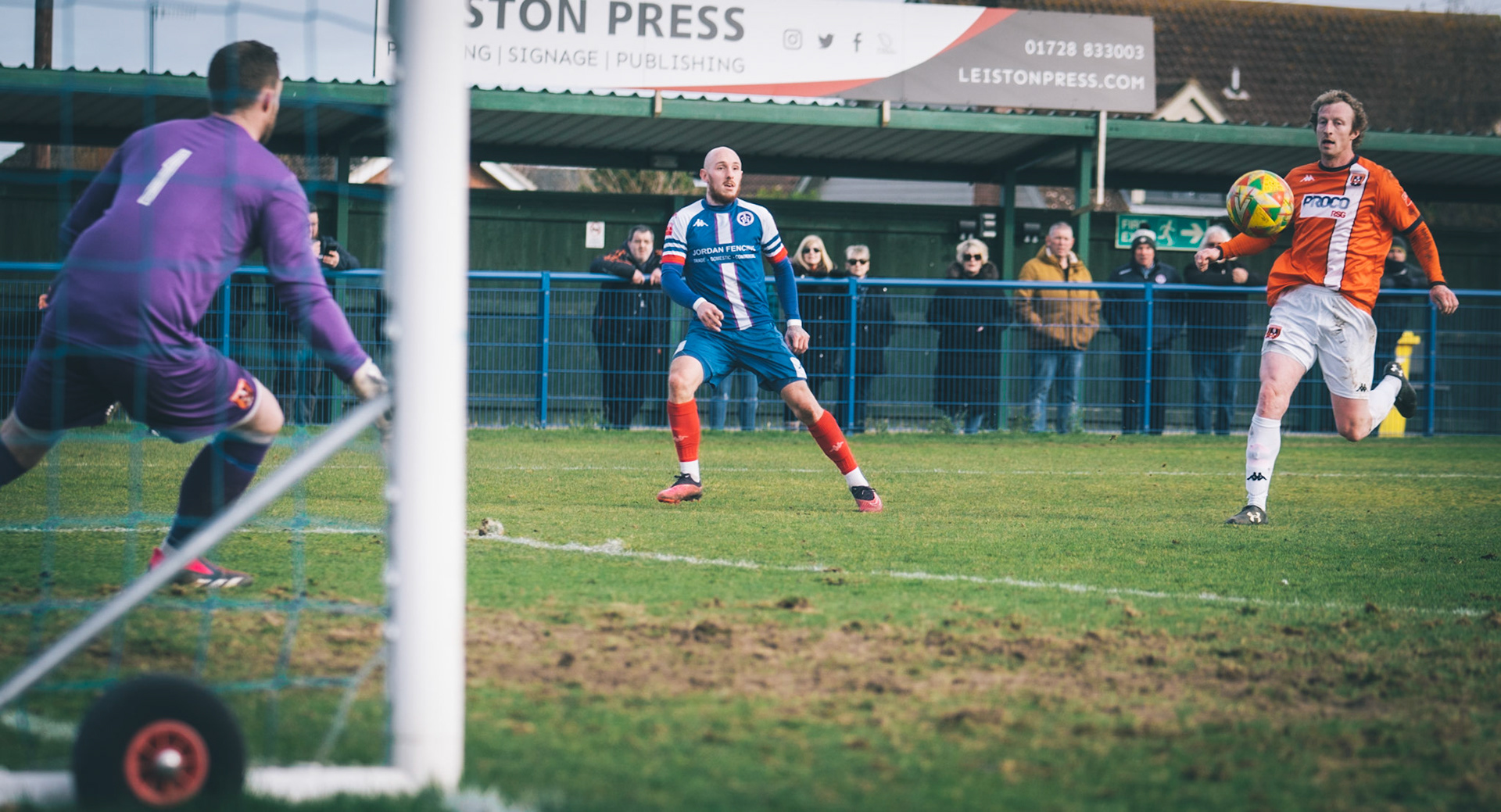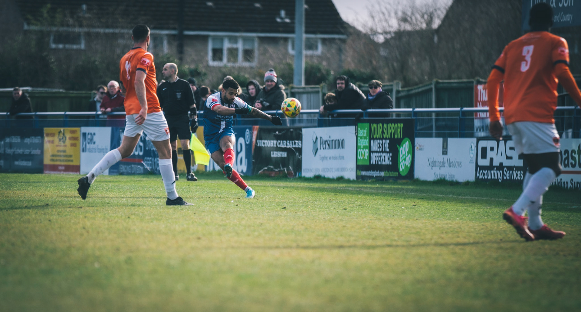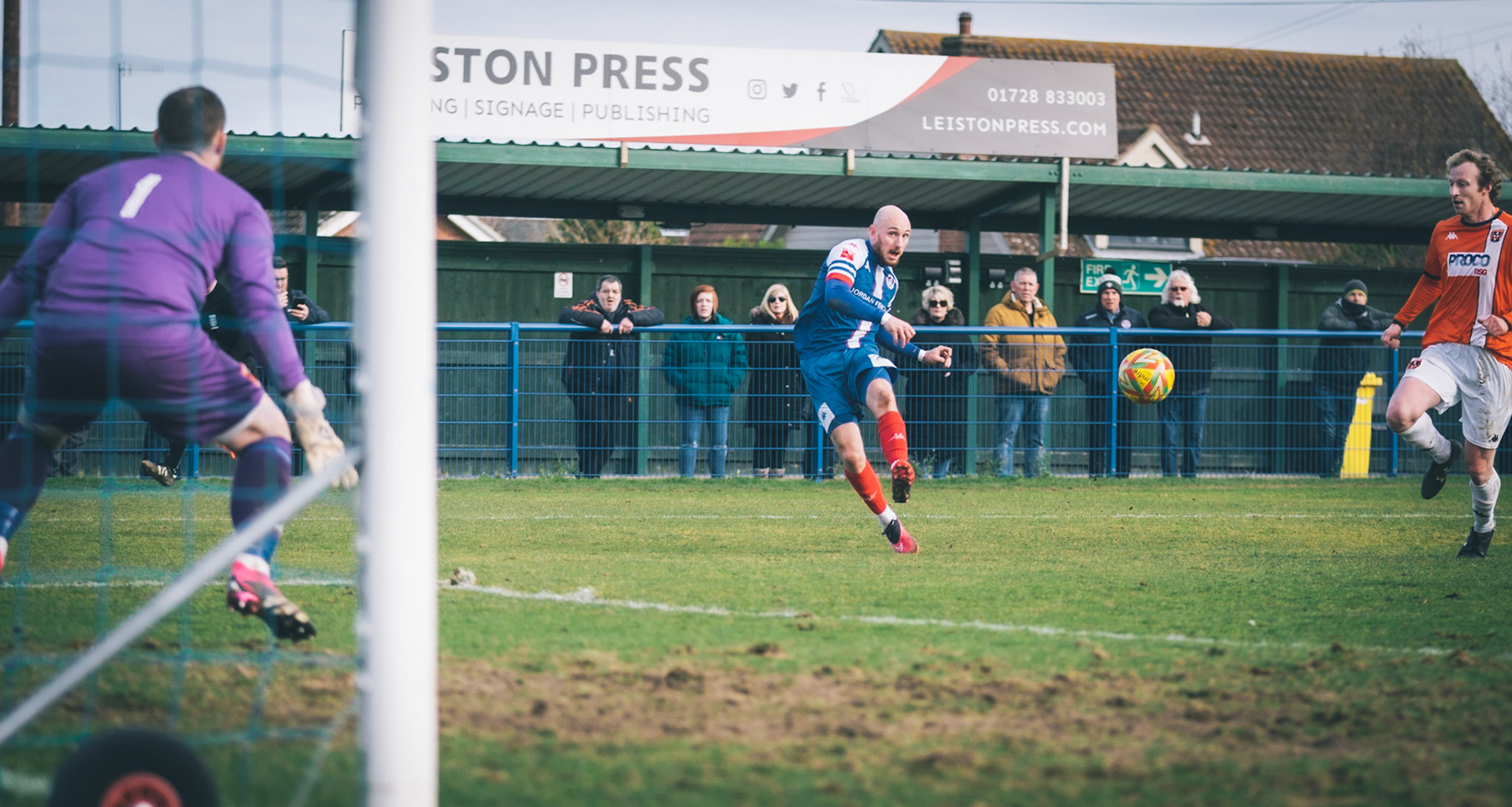 Finlay Barnes putting Leiston 1 nil up with a calm left foot finish