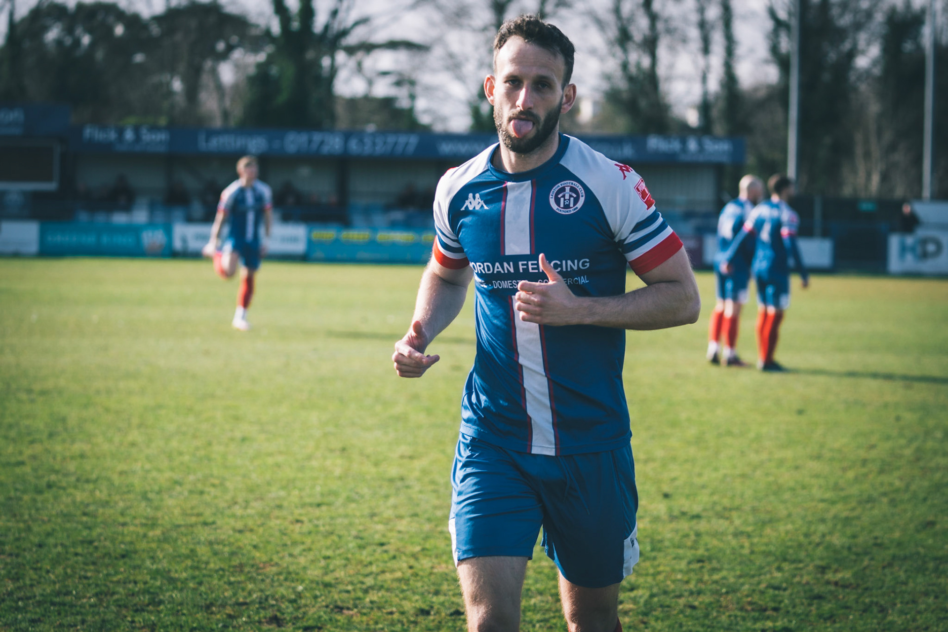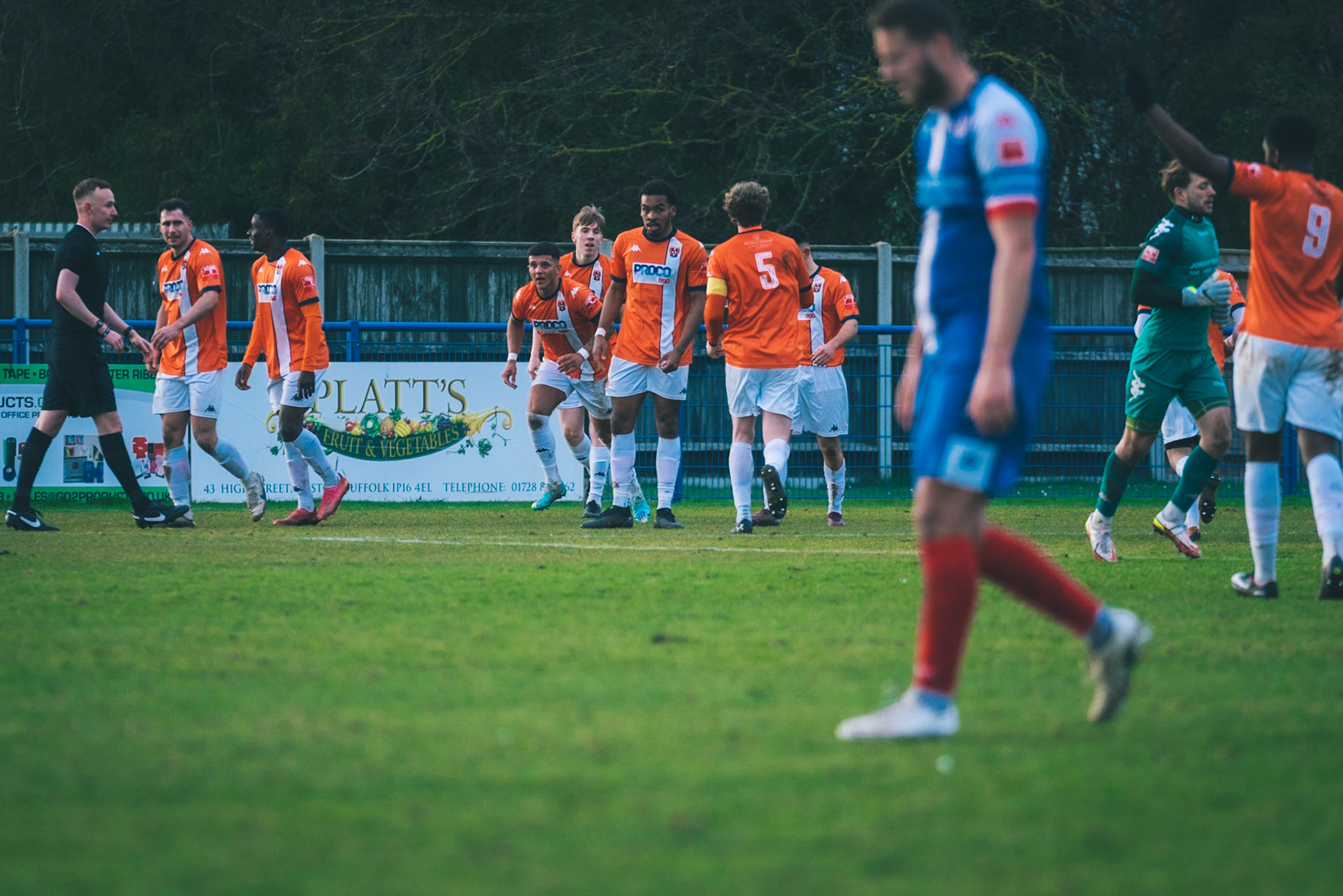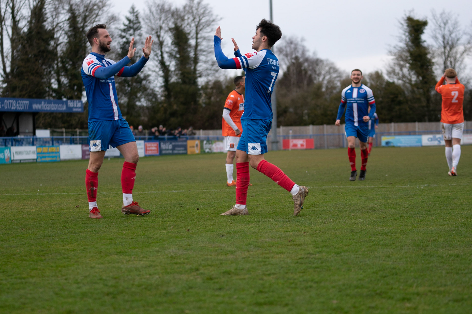 Rossi Jarvis HI 5 with leiston goal scorer No.7 Fin Barnes